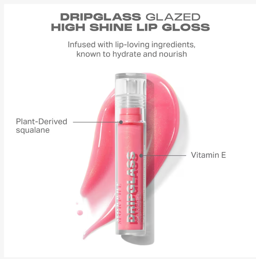 Get glazed and glistening with Morphe's Dripglass Glazed High Shine Lip Gloss. This nourishing formula, infused with plant-derived squalane vitamin E, glides on juicy, semi-sheer, buildable, non-sticky color. Available in two finishes, it glazes lips in glass-effect or naturally shimmering shine.