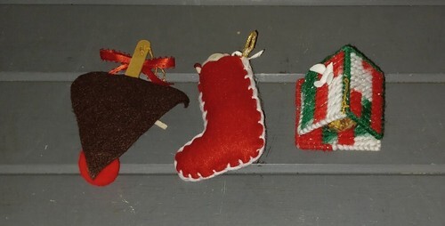 Homemade Vintage Christmas Ornaments Mixed Lot of 3 Stocking Birdhouse Reindeer