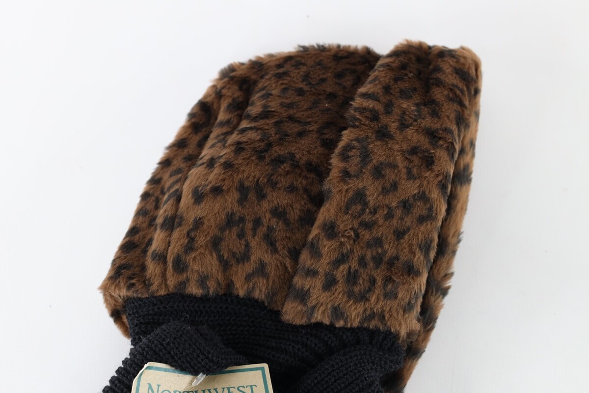Deadstock Vintage 90s Streetwear Leopard Print Fleece Hood Scarf Winter Womens