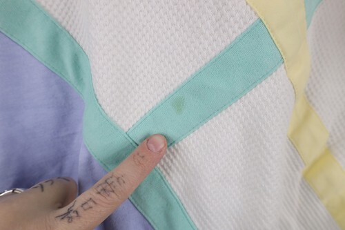 Blemishes front, back, and collar. Pilled.