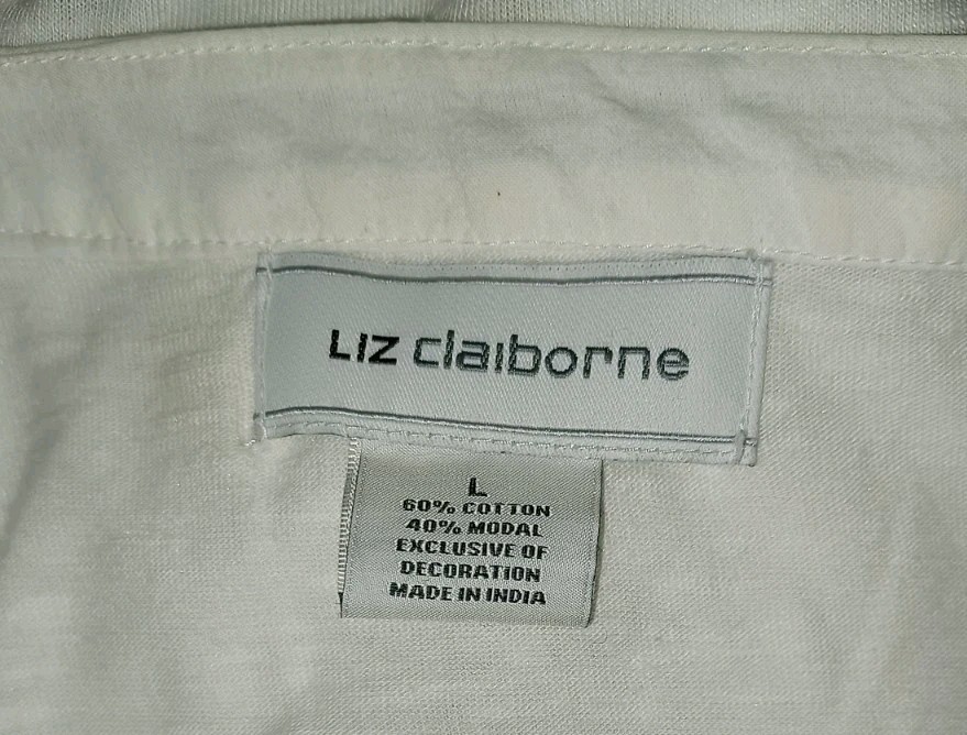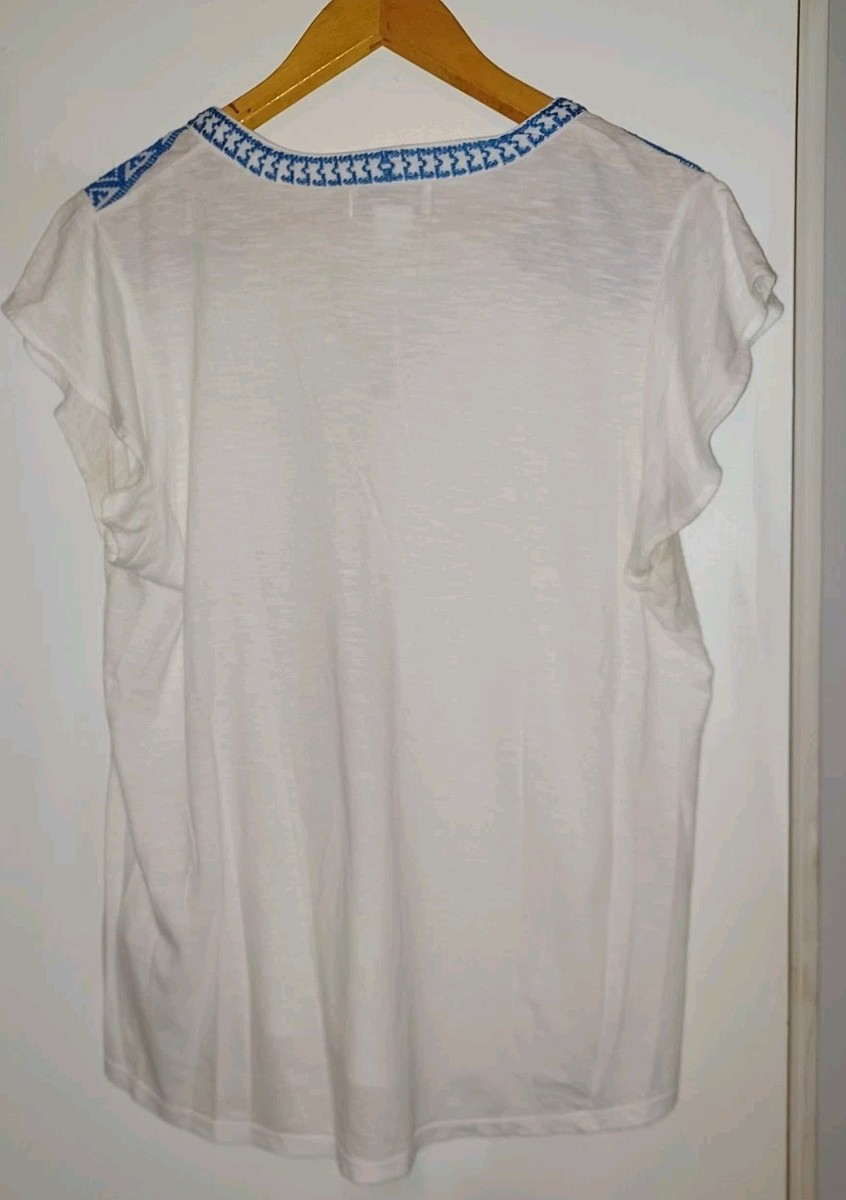 Liz Claiborne White Blue Embroidered Flutter Peasant Blouse Top Women's Size L