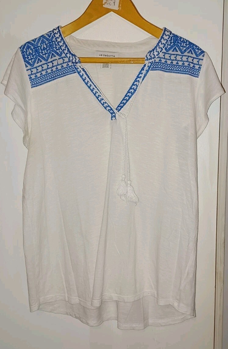 Liz Claiborne White Blue Embroidered Flutter and similar items