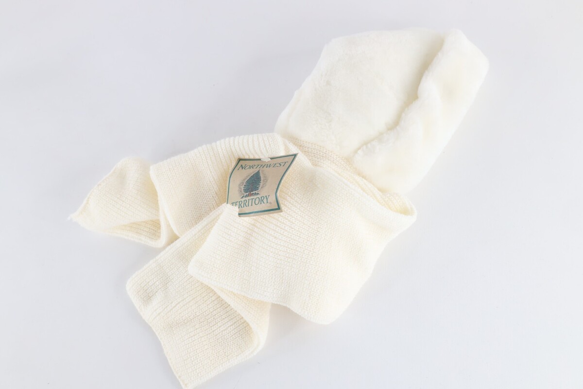 Deadstock Vintage 90s Streetwear Fleece Hood Scarf White Winter Womens OSFA