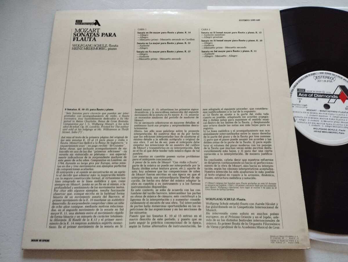 Mozart Sonatas para Flute Schulz Medjimorec Sdd 449 1976 - LP 12 " vinyl VG/VG