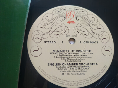 Mozart Flute Concerti Richard Adeney Leppard 1974 Cfp - LP 12 " vinyl VG/VG