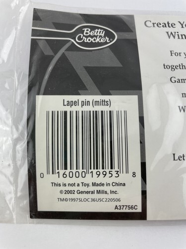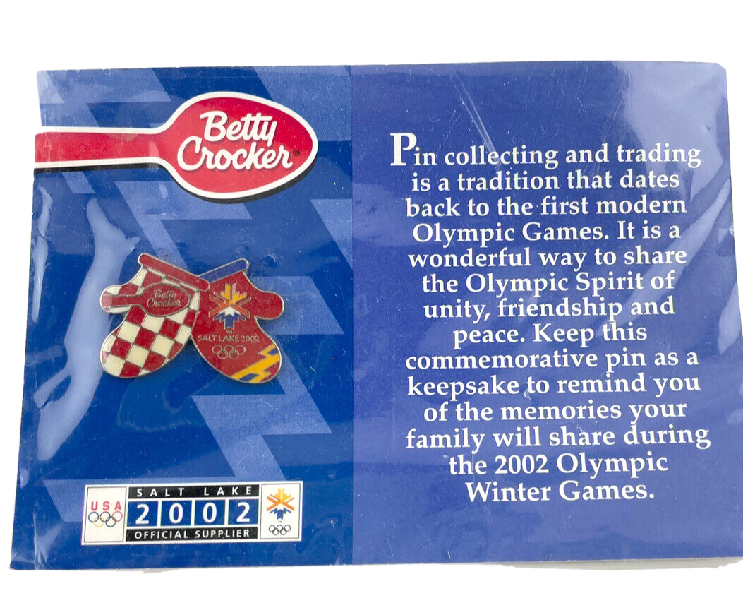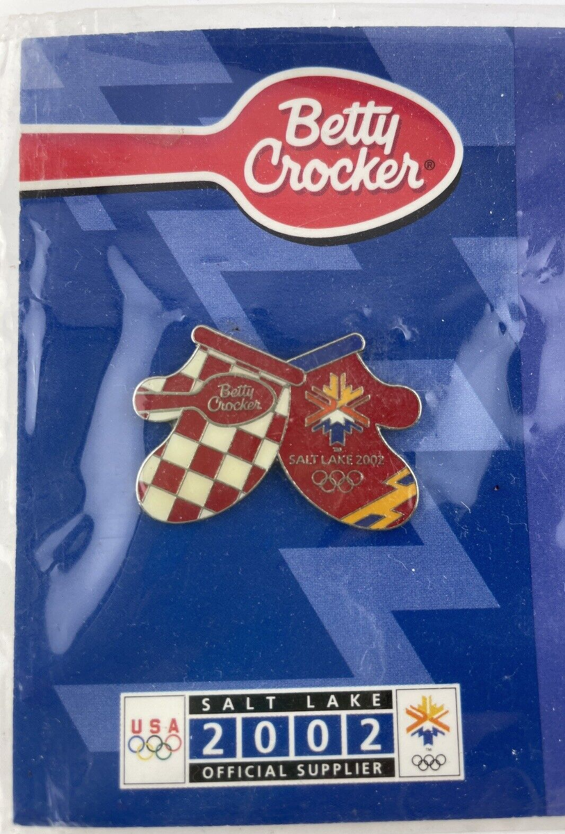 Betty Crocker Red Oven Mitts Lapel Trading Pin Olympics Salt Lake 2002