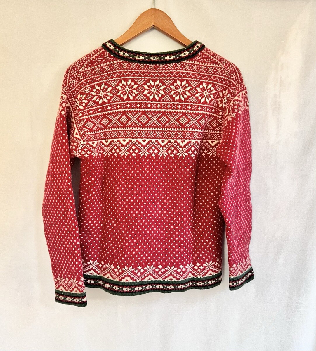 Vintage LL Bean Sweater S Red Nordic Fair Isle 100% Wool Christmas Apres Ski USA