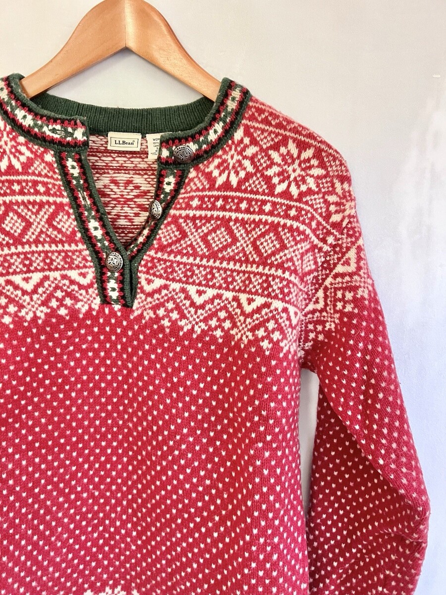 Vintage LL Bean Sweater S Red Nordic Fair and similar items