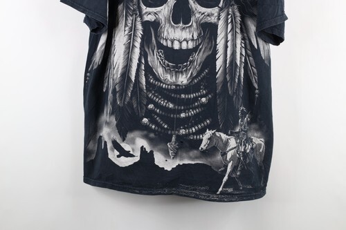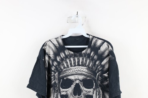 Vintage Y2K Streetwear Mens XL Faded Indian Skull Skeleton T-Shirt Black Cotton