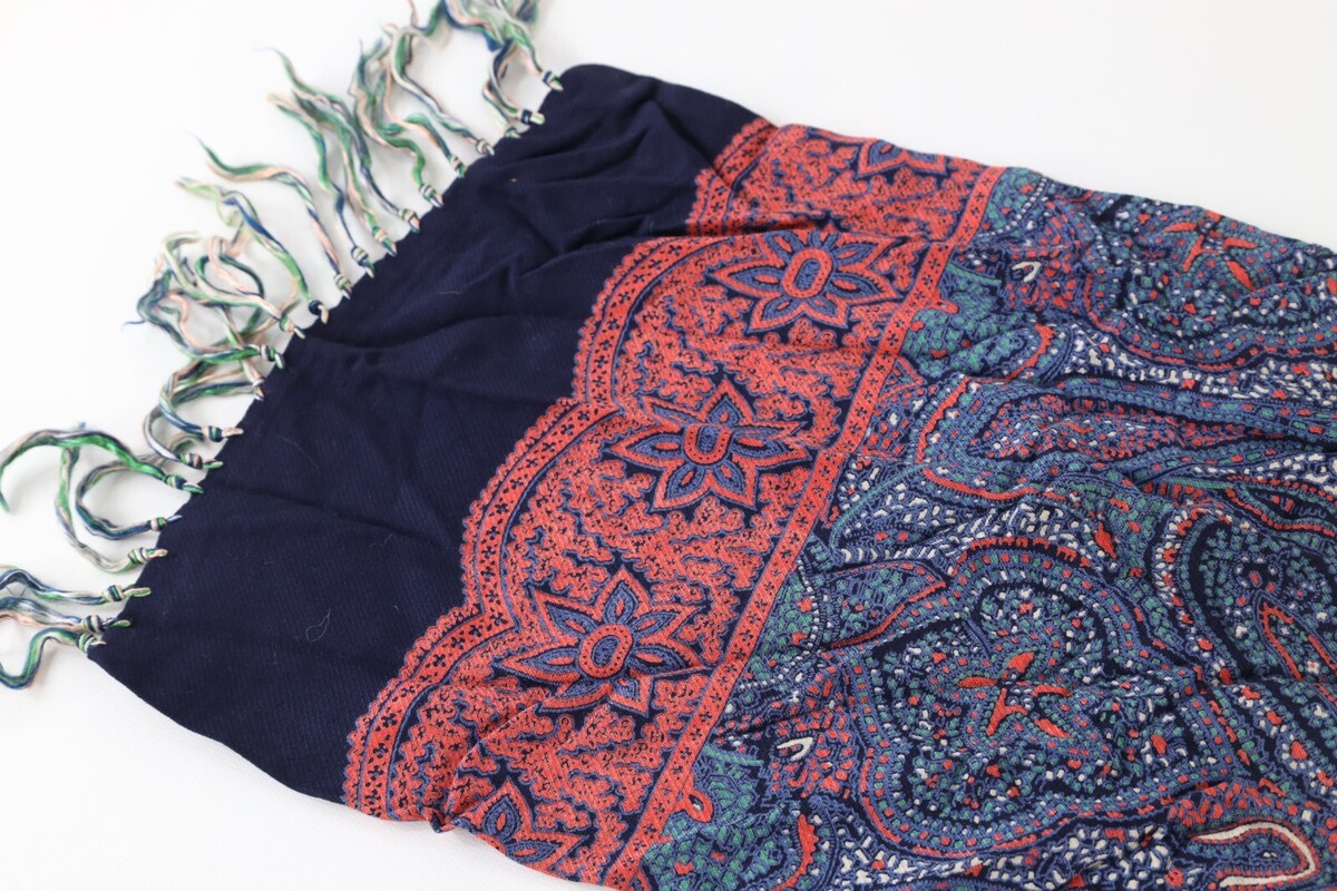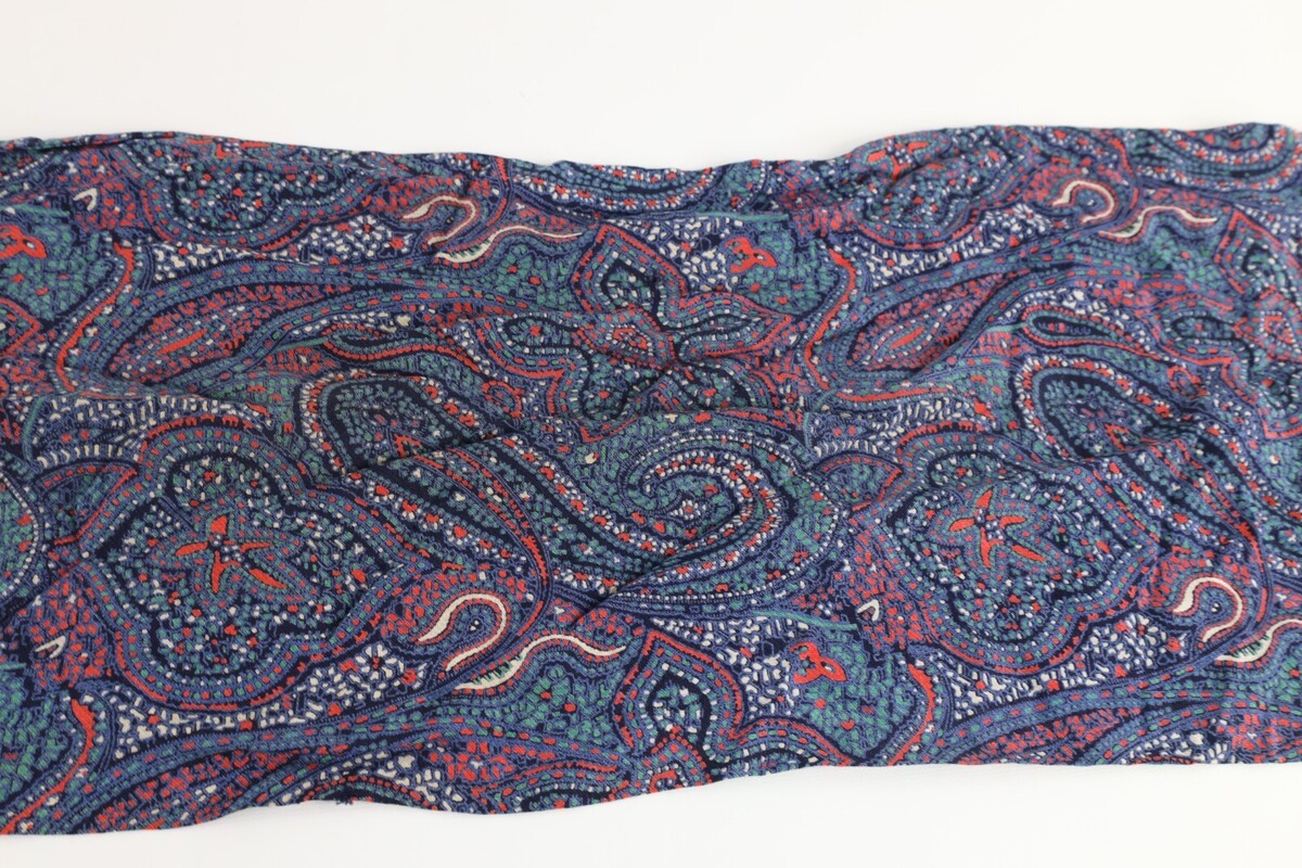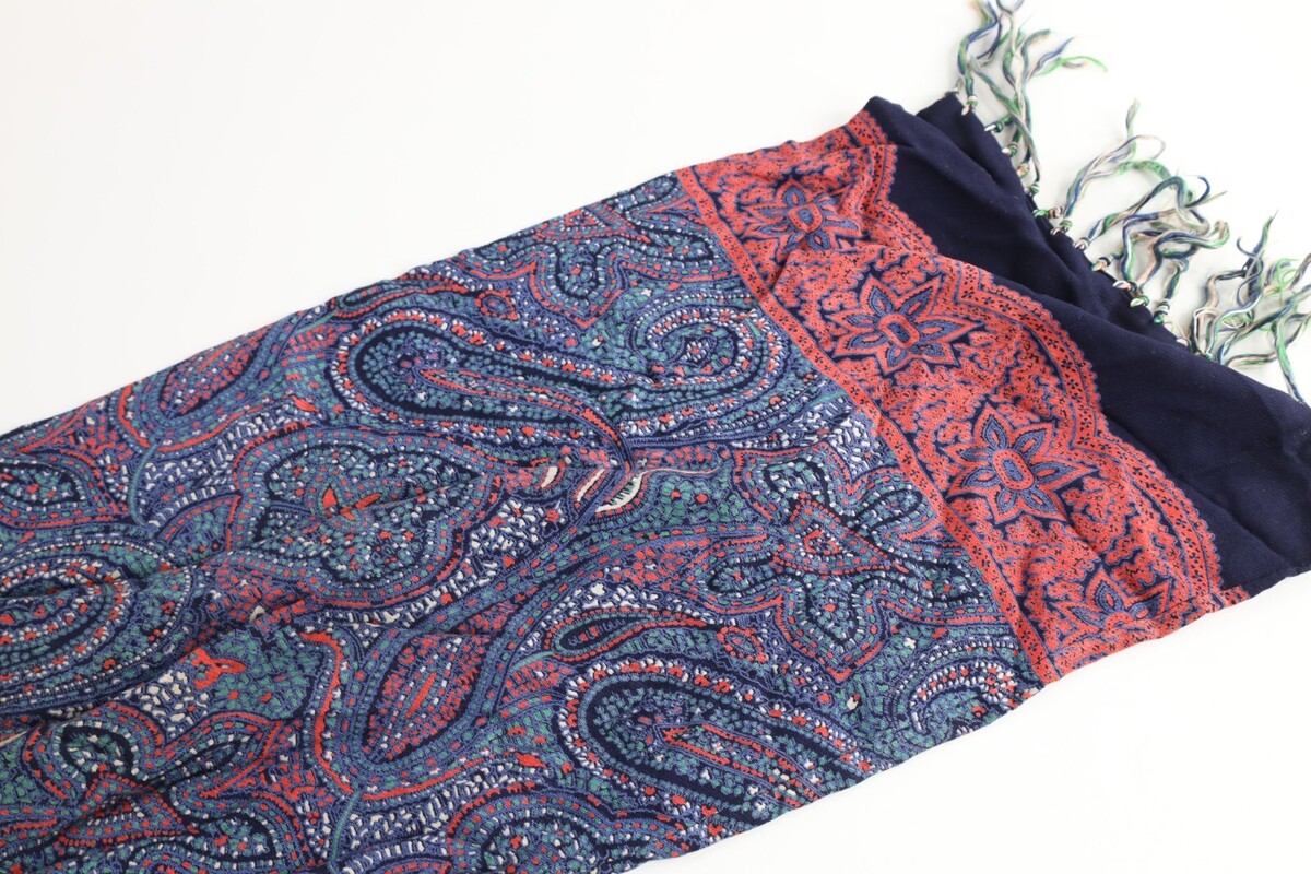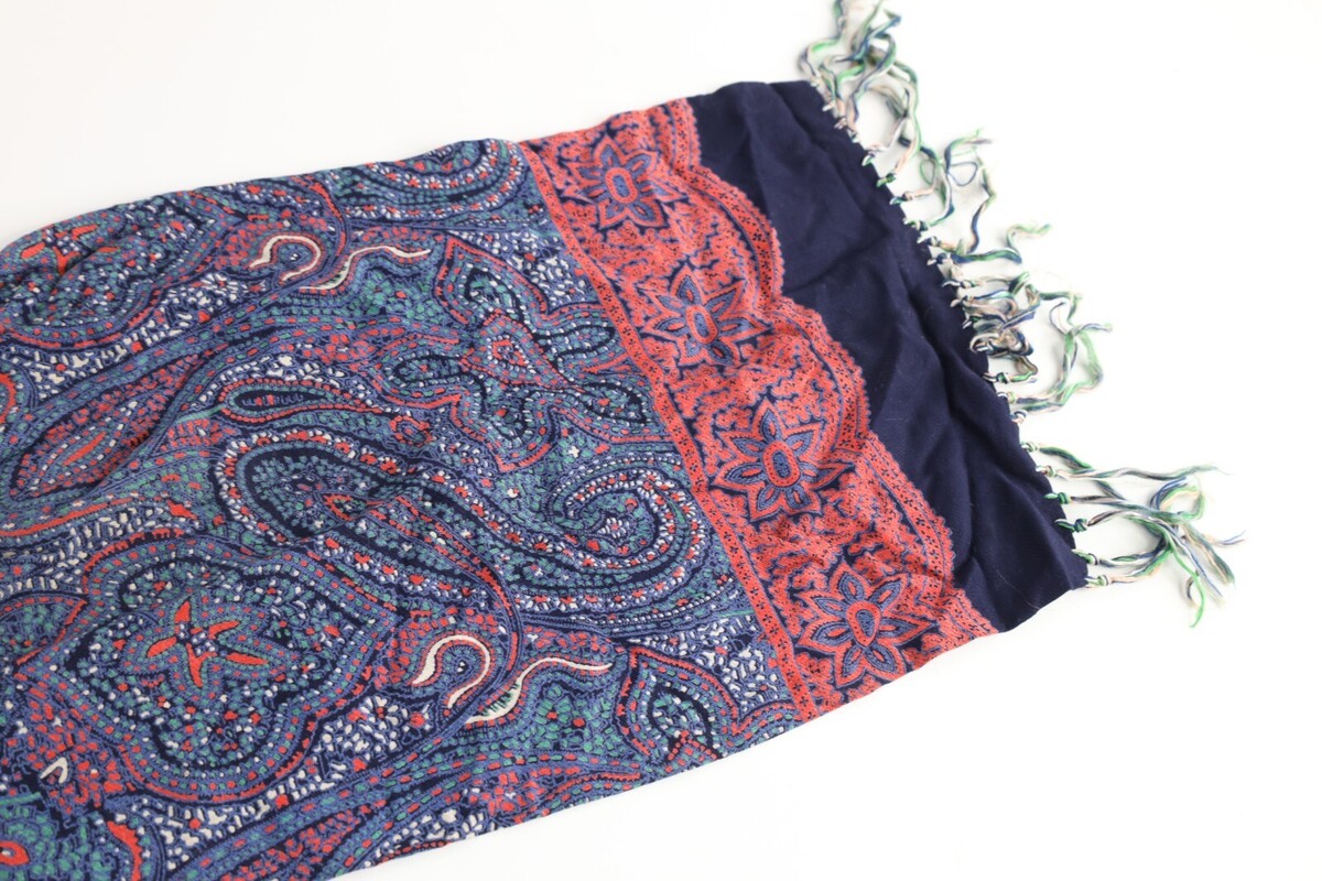 Vintage 40s 50s Rockabilly Paisley Silk Fringed Tassel Scarf Wrap Rainbow USA