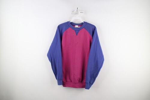 Vtg 70s Streetwear Womens L Distressed Blank Color Block Crewneck Sweatshirt USA