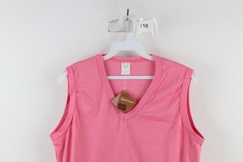 Deadstock Vtg 70s Streetwear Womens Large Blank Knit Tank Top T-Shirt Pink USA