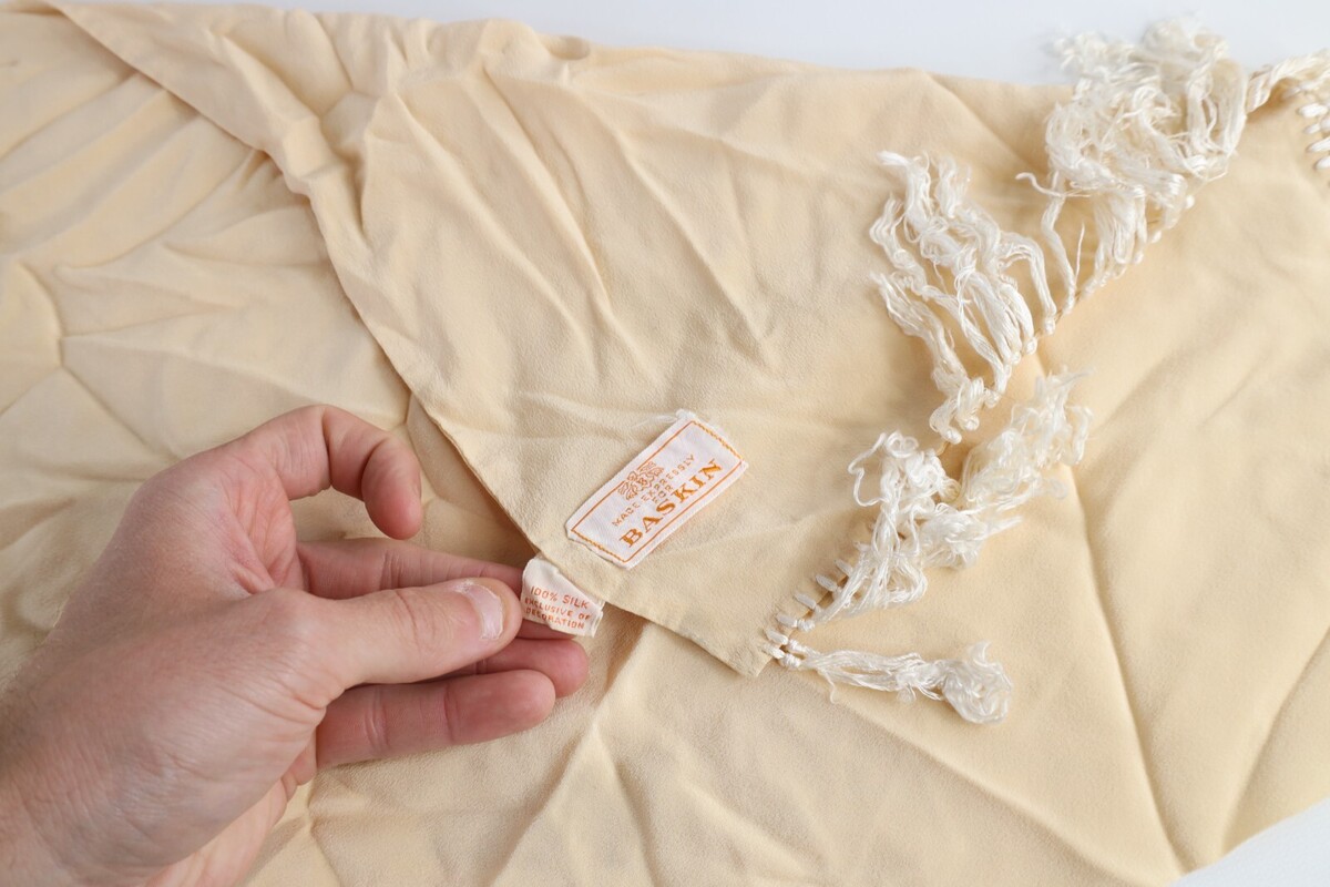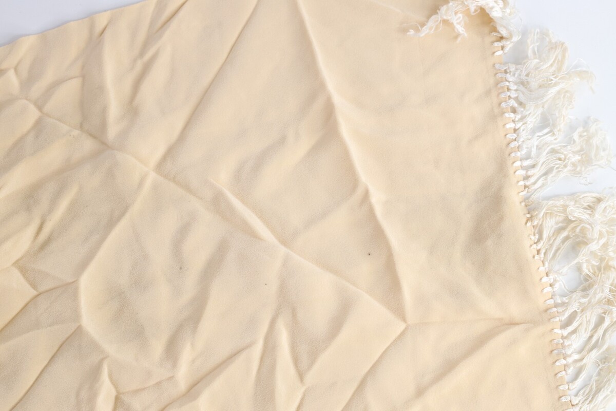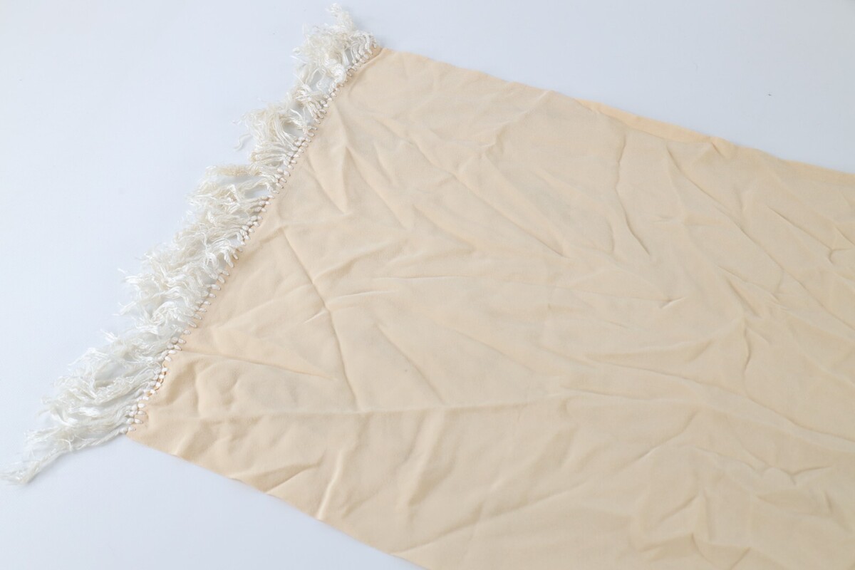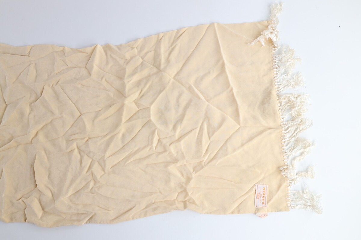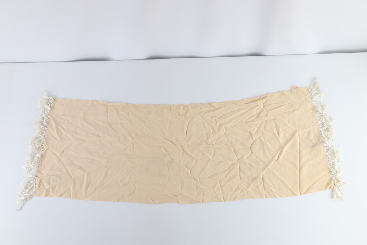 Vintage 40s 50s Rockabilly Distressed Silk Fringed Tassel Scarf Wrap Cream USA