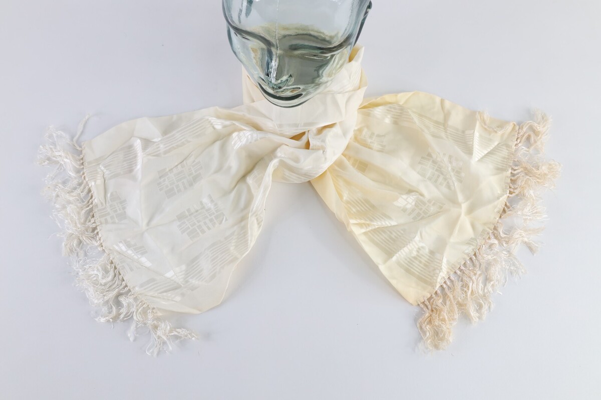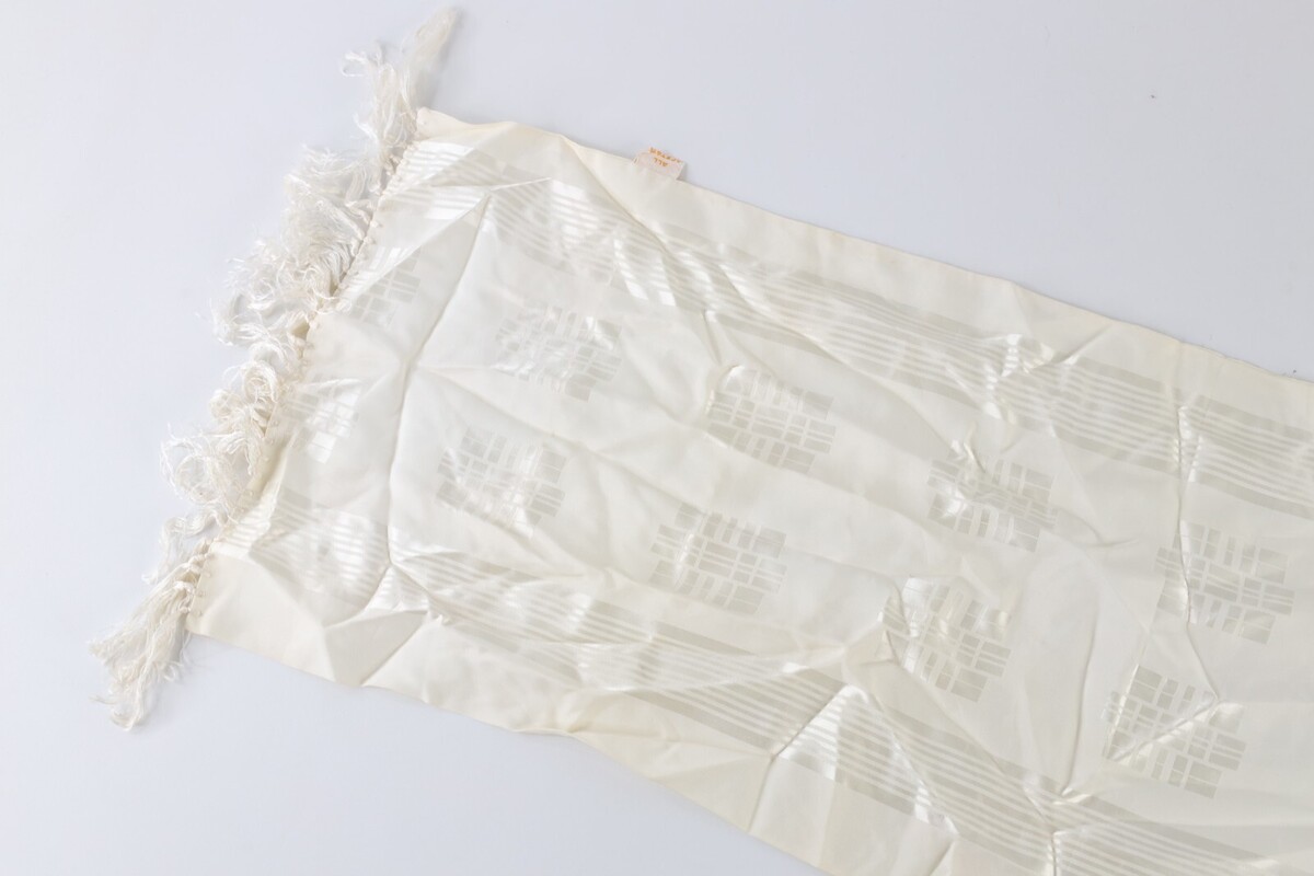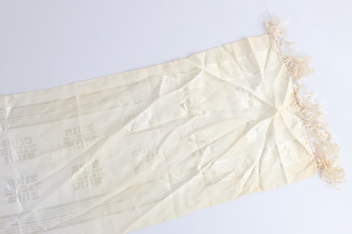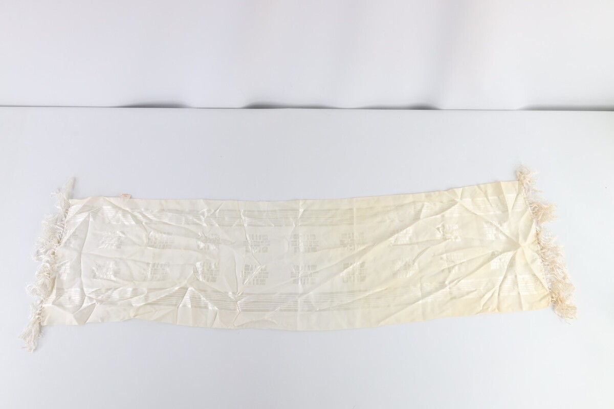 Vtg 40s 50s Rockabilly Distressed Satin Striped Geometric Fringed Tassel Scarf