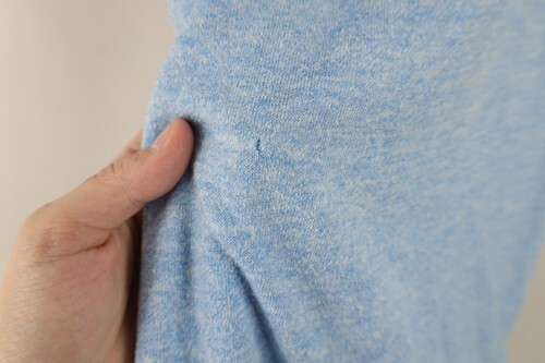 Stains front, back. Hole front. Loose threads arms. Graphics faded, designs distressed. Collar, arms discolored. Color faded. Pilling. Made in USA