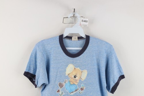 Vtg 70s Russell Athletic Womens S Jersey Knit Koala Bear Ringer T-Shirt Blue USA