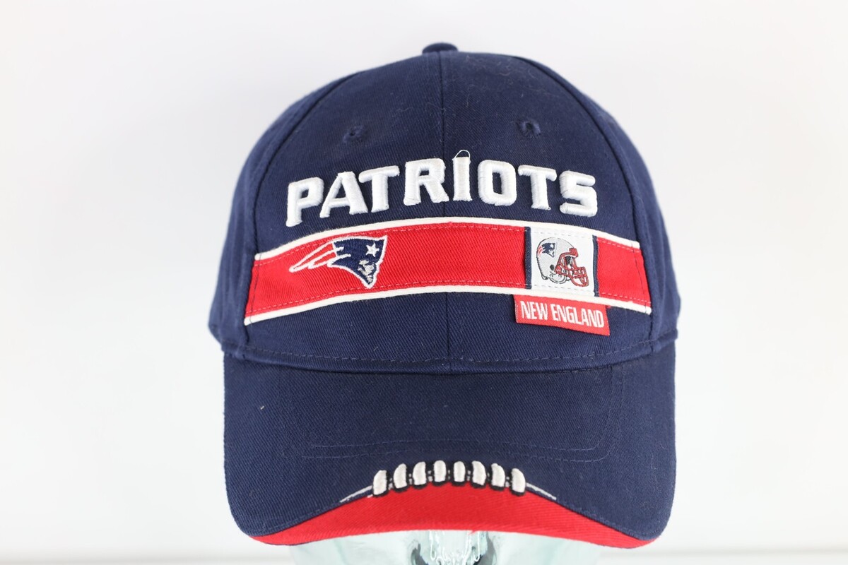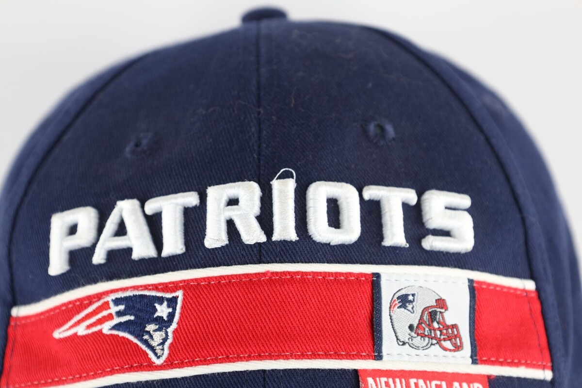 Vintage Reebok Spell Out New England Patriots Football Strapback Hat Cap Blue