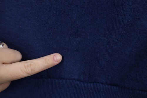Bleach stain back bottom left. Blemishes front bottom. Graphics faded. Color faded. USA made