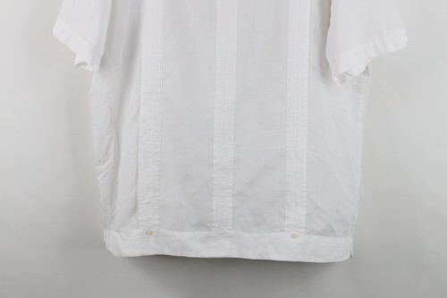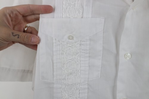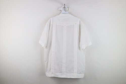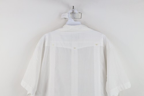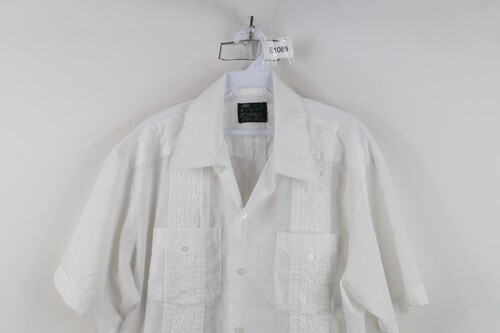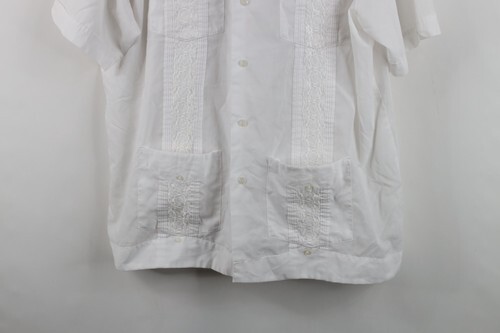 Vintage 70s Rockabilly Mens XL Guayabera Flower Wedding Beach Button Shirt White