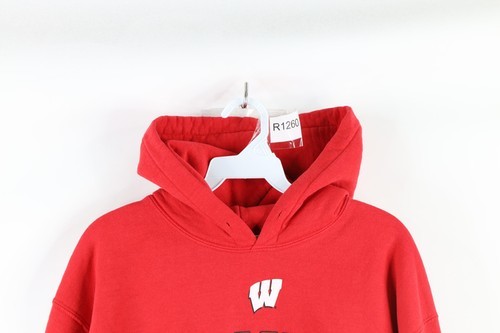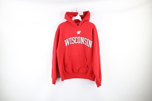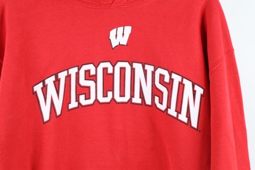 Vintage Mens Medium Distressed Spell Out University of Wisconsin Hoodie Red