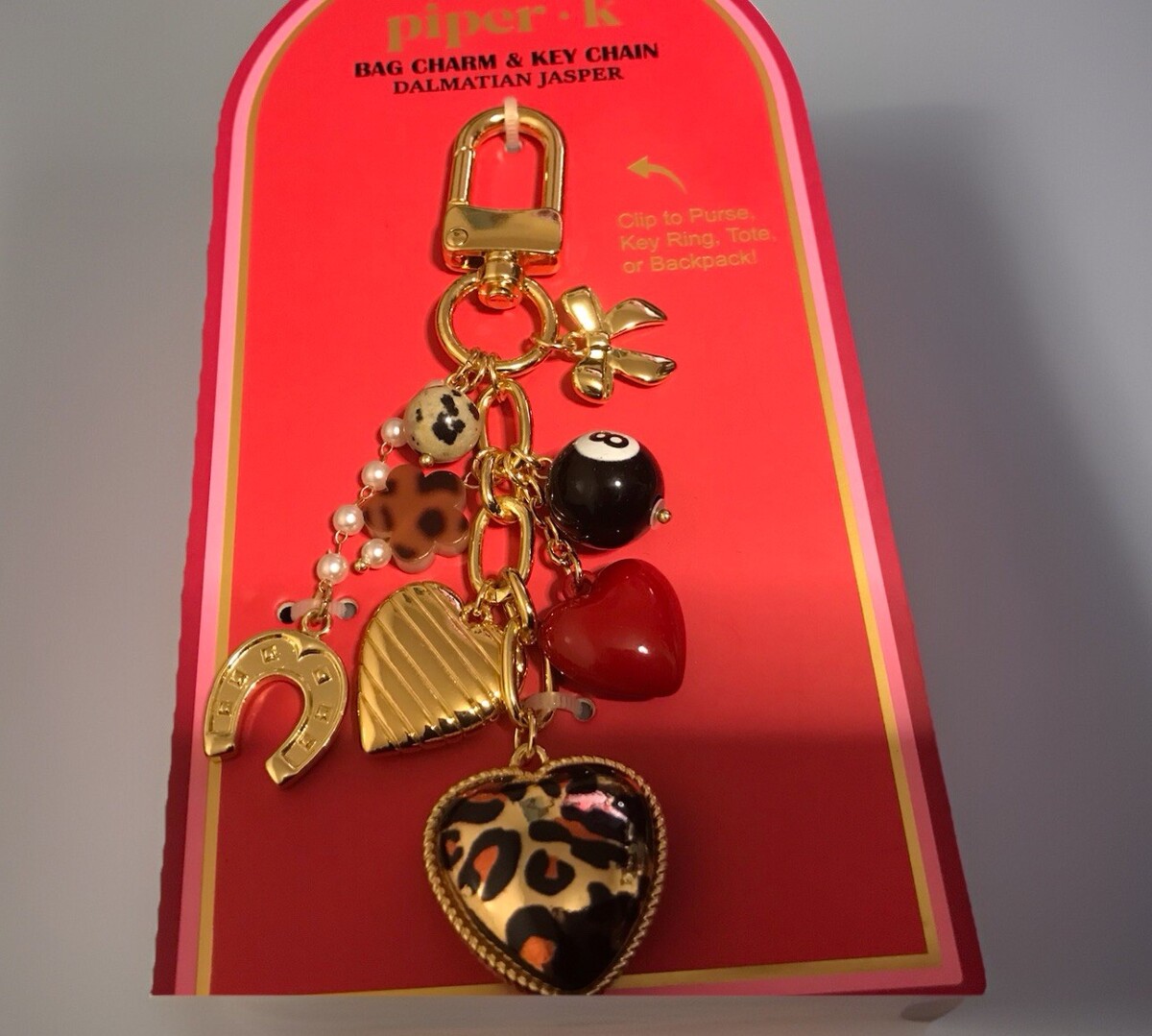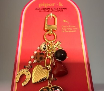 The Piper K bag charm and key charm in Dalmatian Jasper is a fashionable accessory designed for women. With a multicolor design and a charm character family of Charmed, this key chain adds a touch of style to any bag or set of keys. Perfect for adding a unique flair to your everyday look, this charm is sure to stand out and make a statement.