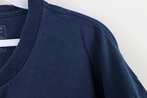 Collar stretched. Blemishes front, shoulders, back top. Collar, shoulders, arms discolored. Graphics cracking/peeling. Color faded. Pilling