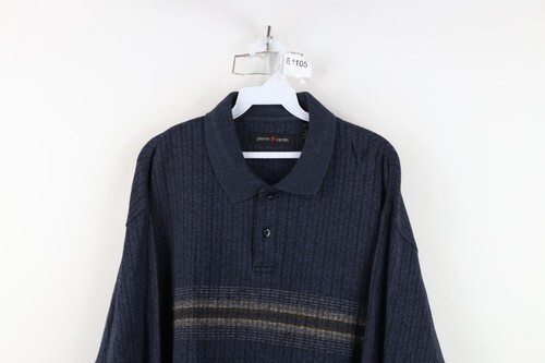 Vintage 90s Streetwear Mens XL Striped Ribbed Knit Long Sleeve Rugby Polo Shirt
