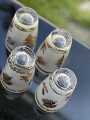 4 Vintage 1960 Libbey Frosted Gold Leaf 8oz Drinking Glasses Juice Water.