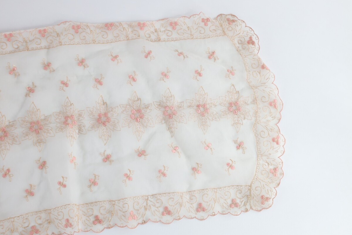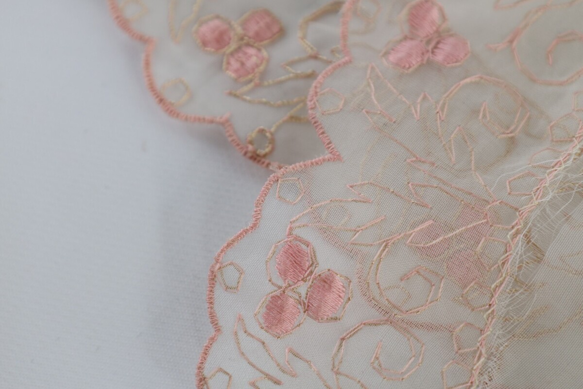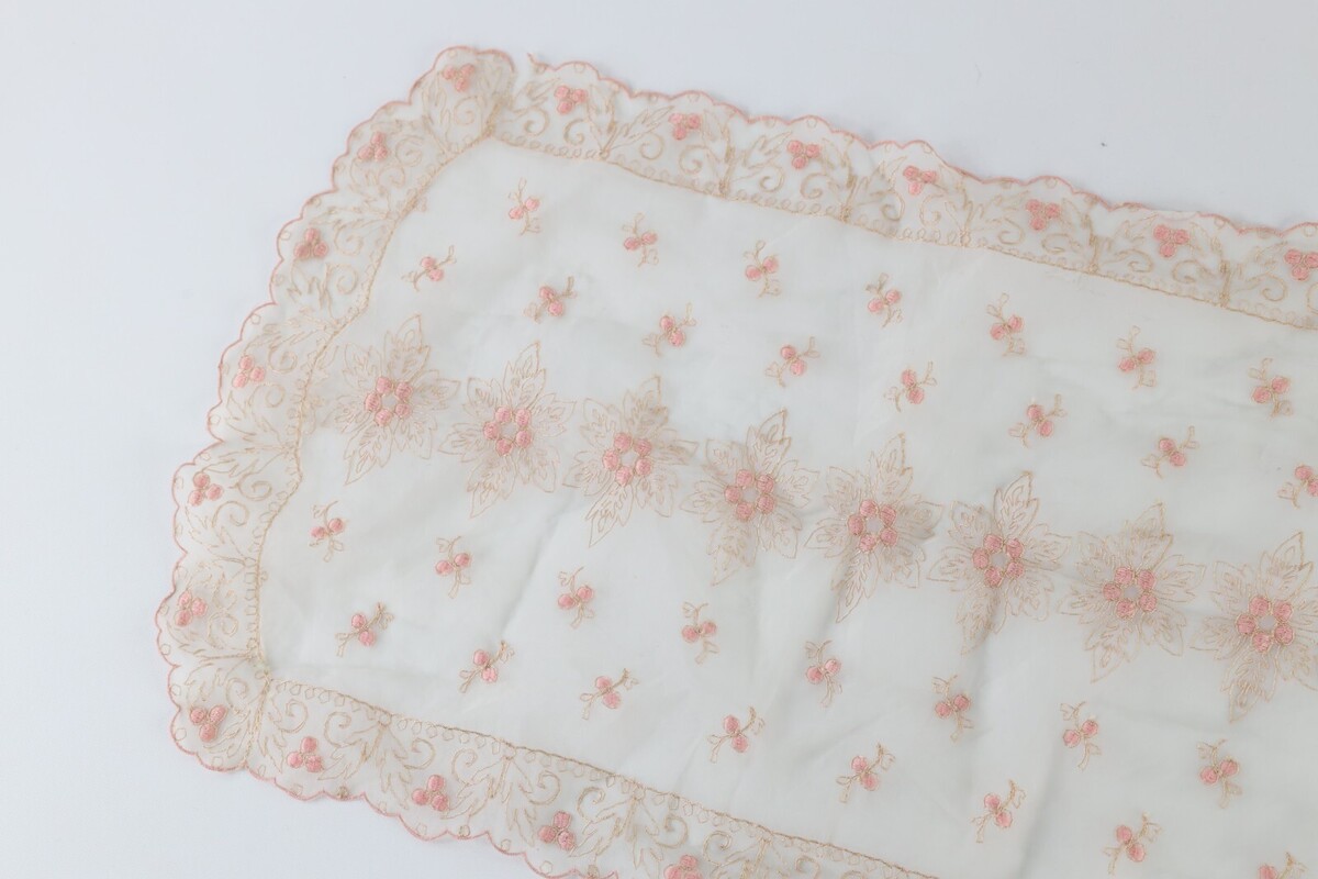 Vintage Antique Japan Hand Embroidered Cherry Blossom Silk Lace Sheer Scarf Wrap
