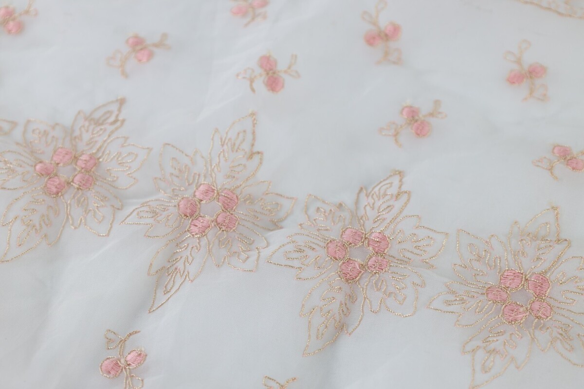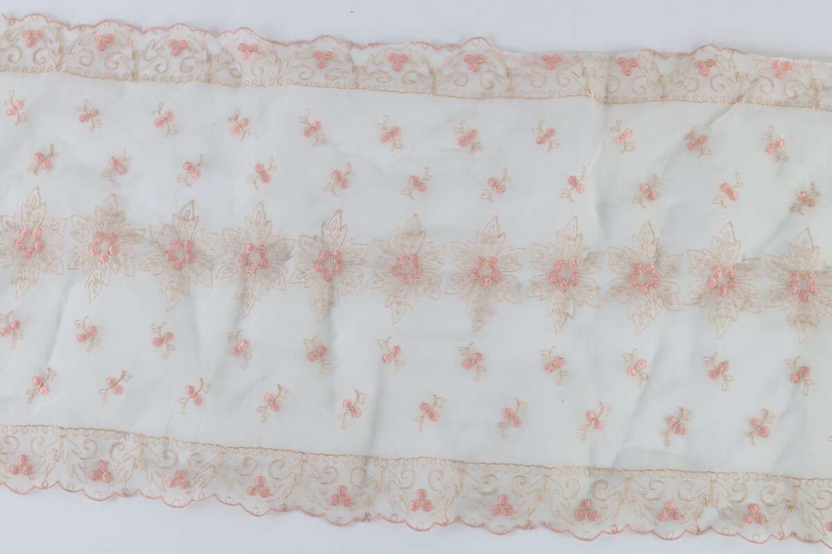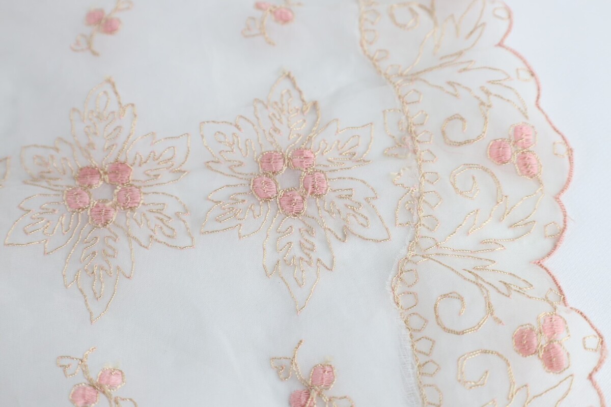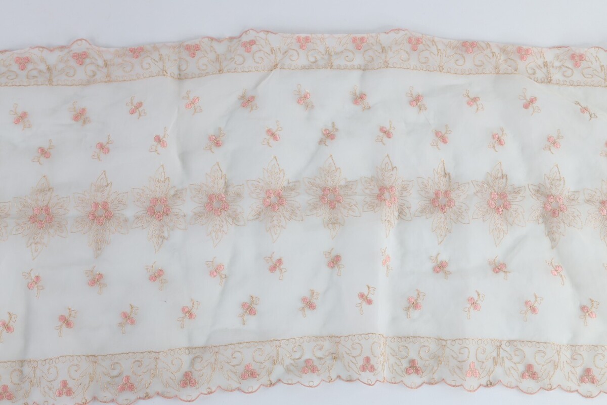 Vintage Antique Japan Hand Embroidered Cherry Blossom Silk Lace Sheer Scarf Wrap