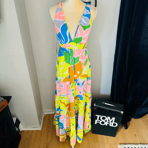 Maaji Selvatik Marea Knit Cover-Up Maxi Dress, Yellow/Blue Size Small 2/4, NWT