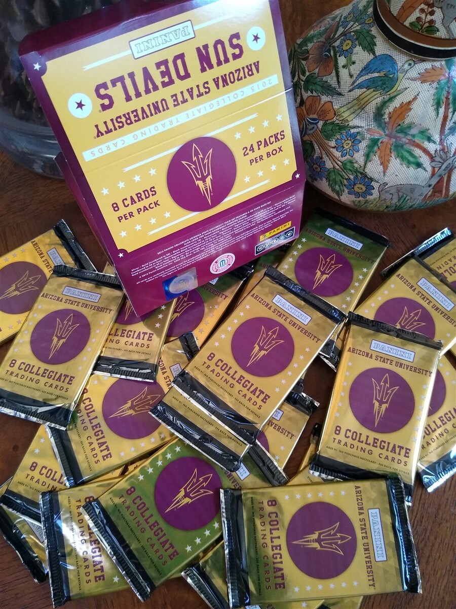 La collezione del team del Panini College dell'Arizona State University presenta grandi grandi del passato nelle loro uniformi ASU. Contiene anche carte che potrebbero includere Sun Devil Stadium e Sparky.