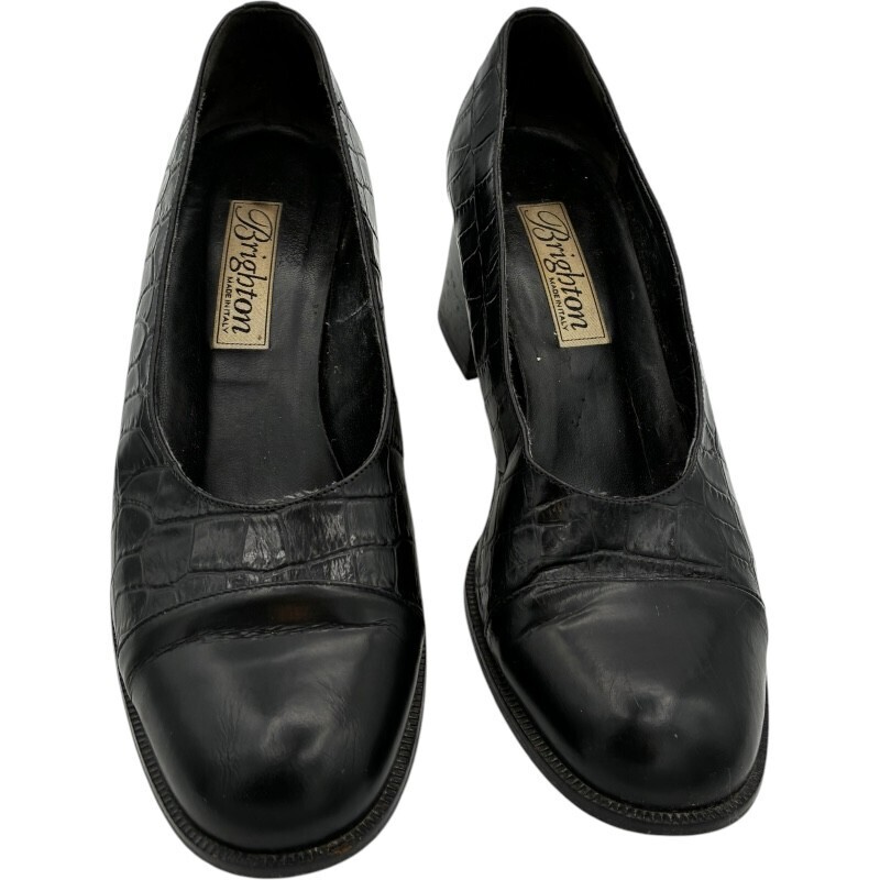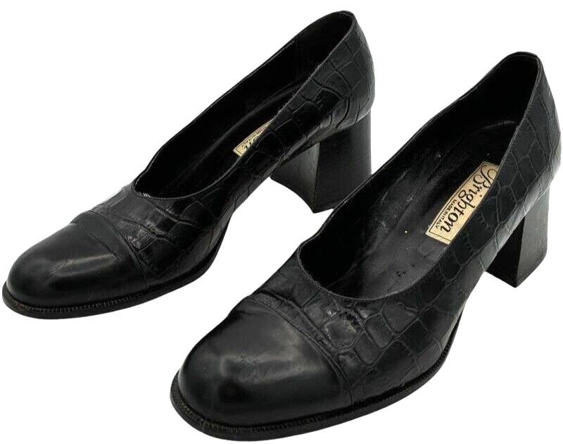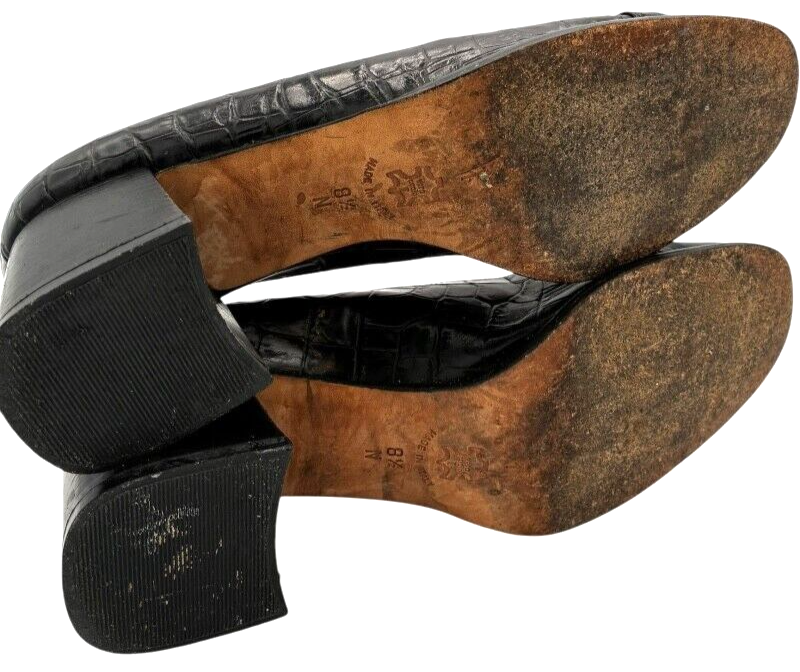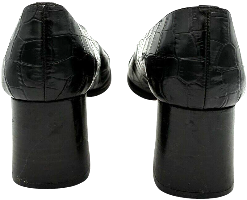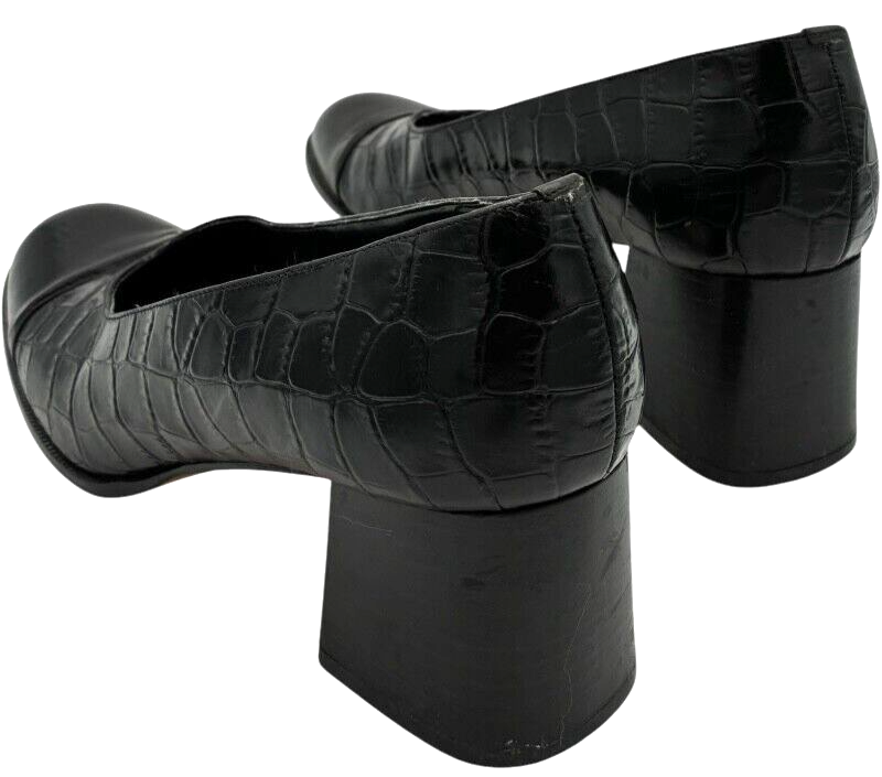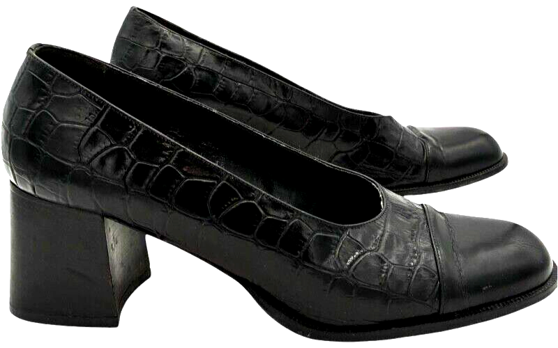 brighton women's black crocodile print leather block heeled 2" pumps size 8.5 N