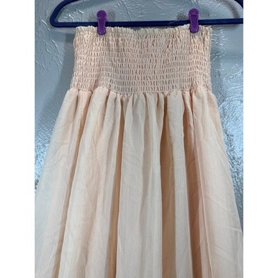 Free People Below Knee Strapless Peach Dress Ruched Lace Up Back Size XS/S