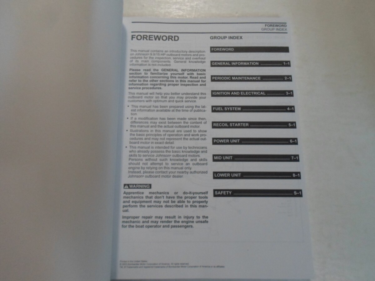 2003 Johnson St 4 Stroke Models 9.9/15 Manuale dell'officina di riparazione di servizi