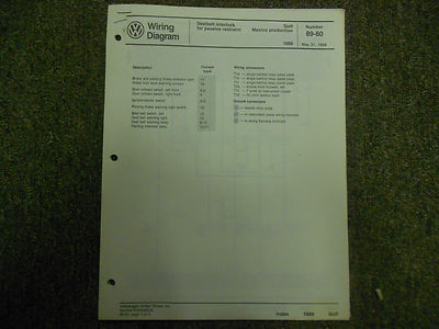 1989 VW Golf Diesel Gl Gti Cintura Auto Trans Cavi Diagramma Servizio Manual OEM
