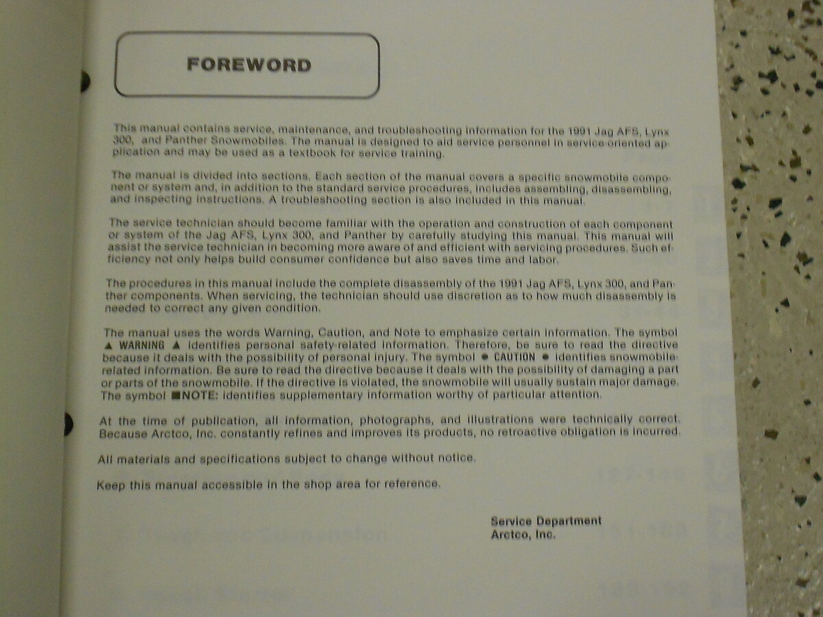 1991 Arctic Cat Lynx, JAG AFS e Panther Service Manual e Lynx Parts Manual