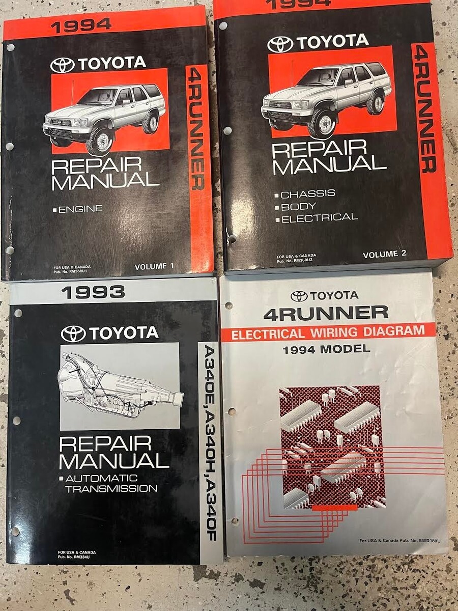 1994 Set manuale di servizio di fabbrica 4runner del 1994, manuale del diagramma di cablaggio e manuale Transaxle