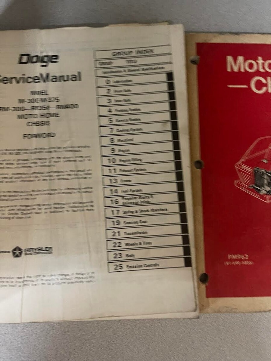 Manuale Parti Chassis Motor Home Dodge 1968 1969 1970 M300-375 RM300-350-400