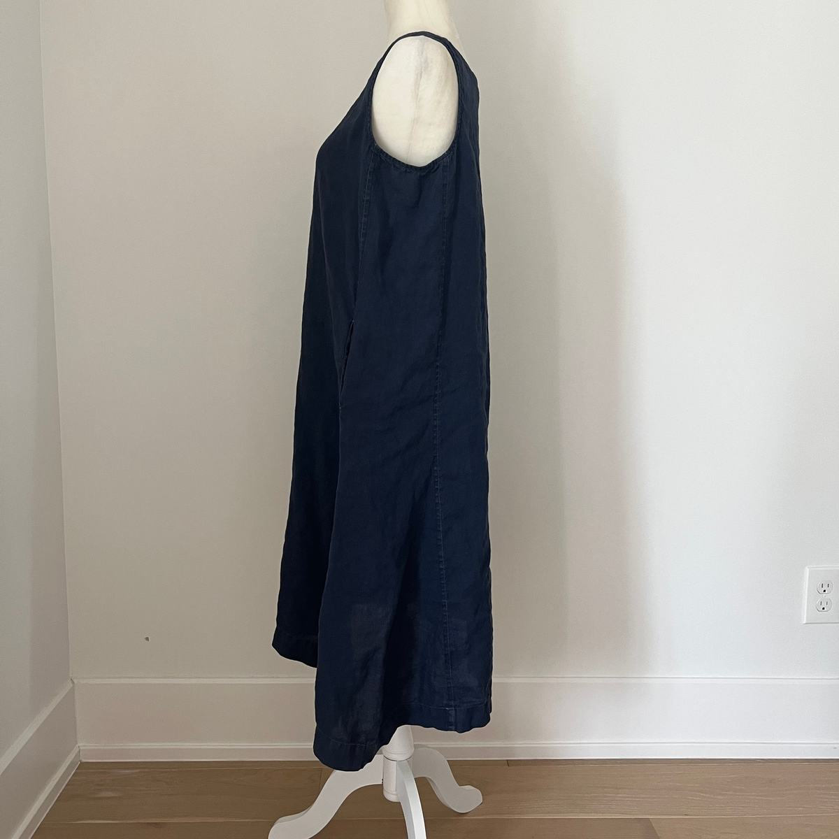 Pure J. Jill Love Linen V-neck Asymmetric Sleeveless Dress Navy Medium Petite
