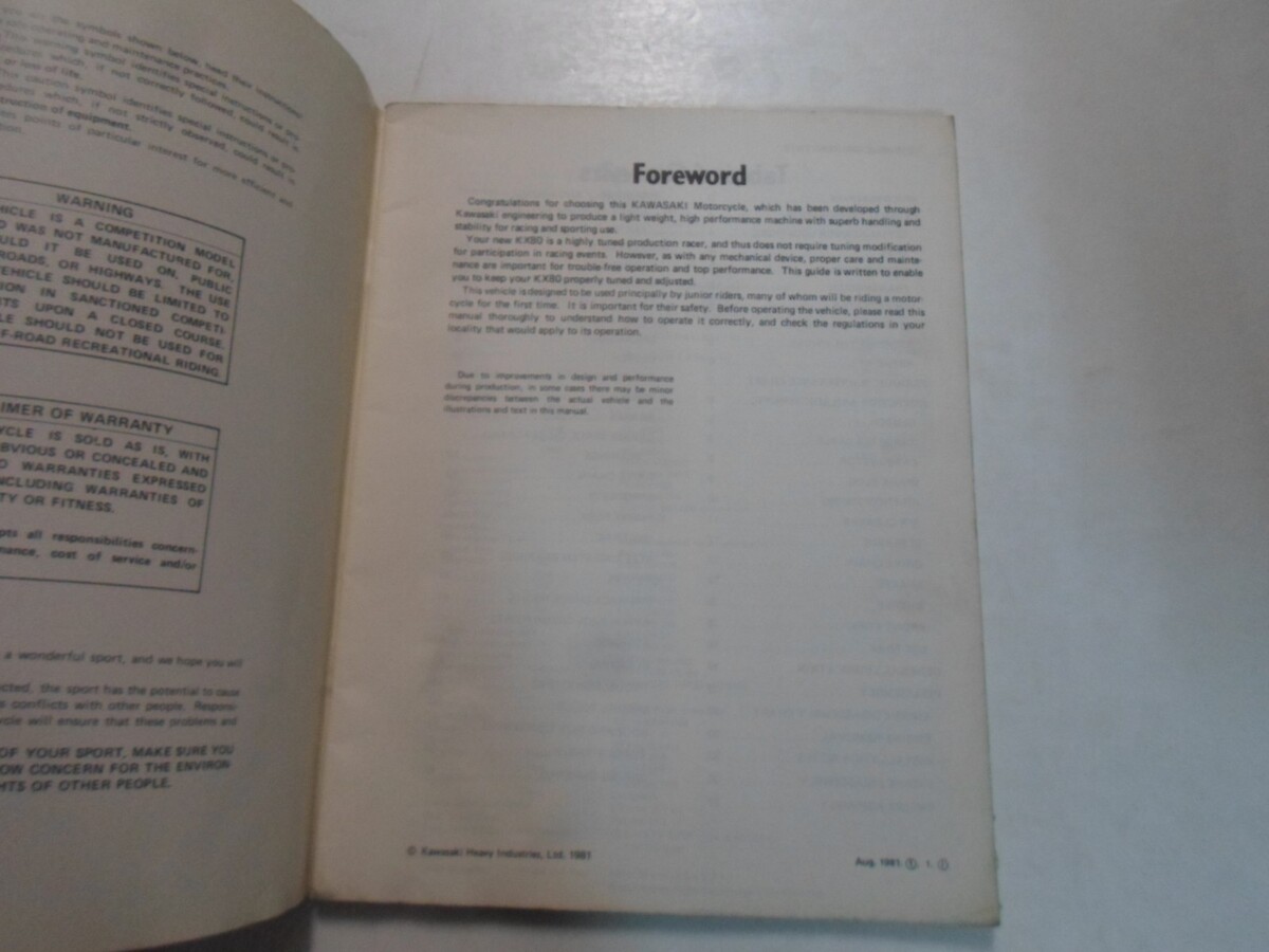 1982 Kawasaki KX80 Motorcycle Owners Manual Service manual WATER DAMAGED WORN
