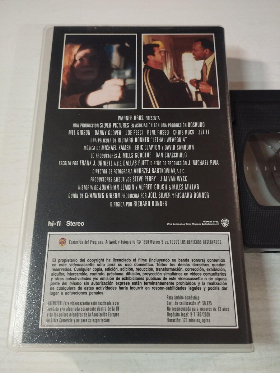 LETHAL WEAPON 4 LETHAL WEAPON MEL GIBSON DANNY GLOVER Donner - VHS Tape Spanish Please, si you are node agreementconel statedel item when you receive it and are thinking of voting neutral or negative, we ask youque write to usantes para resolve this situation. Remember que we accept returns sin problems and we preferno make a saleantesque receiveun unfavorable vote. We will communicate con paraque you are totally satisfiedcon the solution. Please, if you do not agree with the state of the article when you receive it and you are thinking about neutral or negative voting, we ask you to write to us before resolving this situation. Remember that we ACCEPT returns without problems and we prefer not to make a sale before receiving an unfavorable vote. We will communicate quickly so that you are