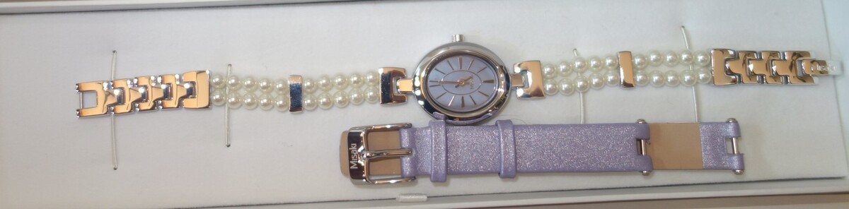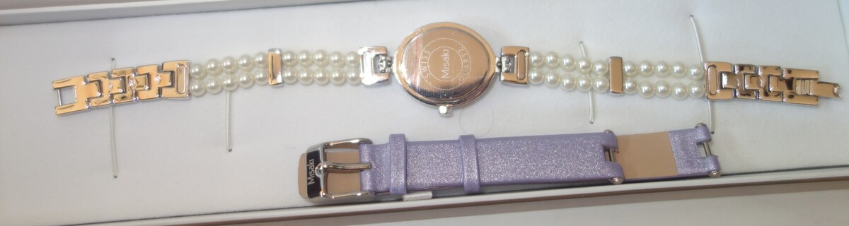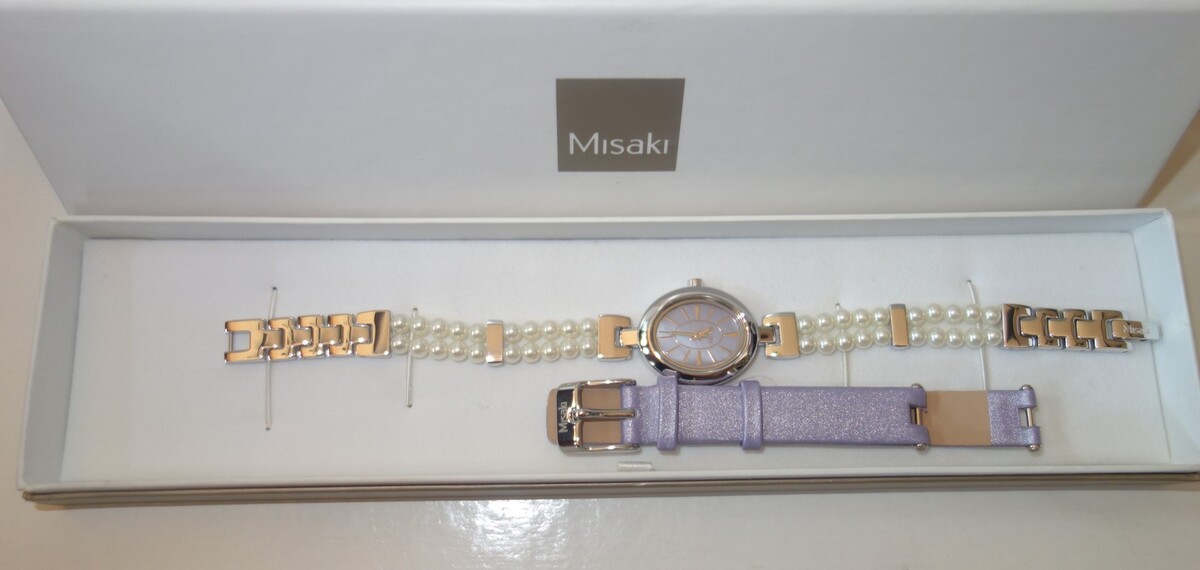 MISAKI Ladies swiss quartz Watch stainless steel with Pearls and two bands new