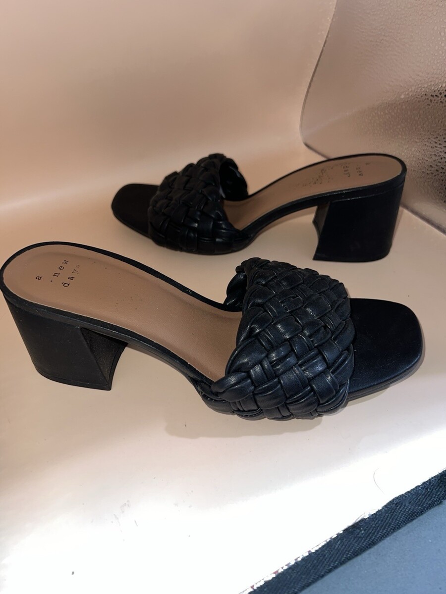 A New Day Dorothy Braided Heeled Slide Mule Black Size 7.5 Open Toe Heels