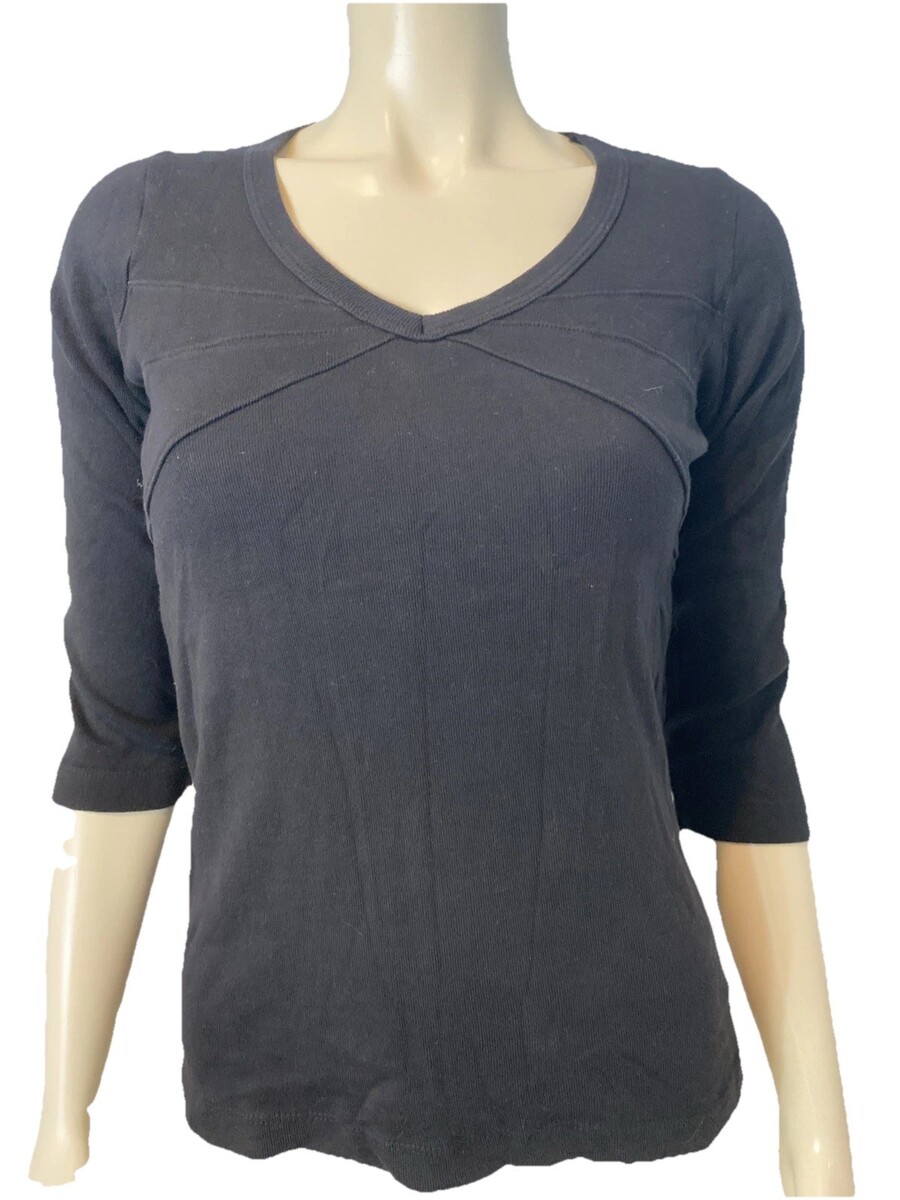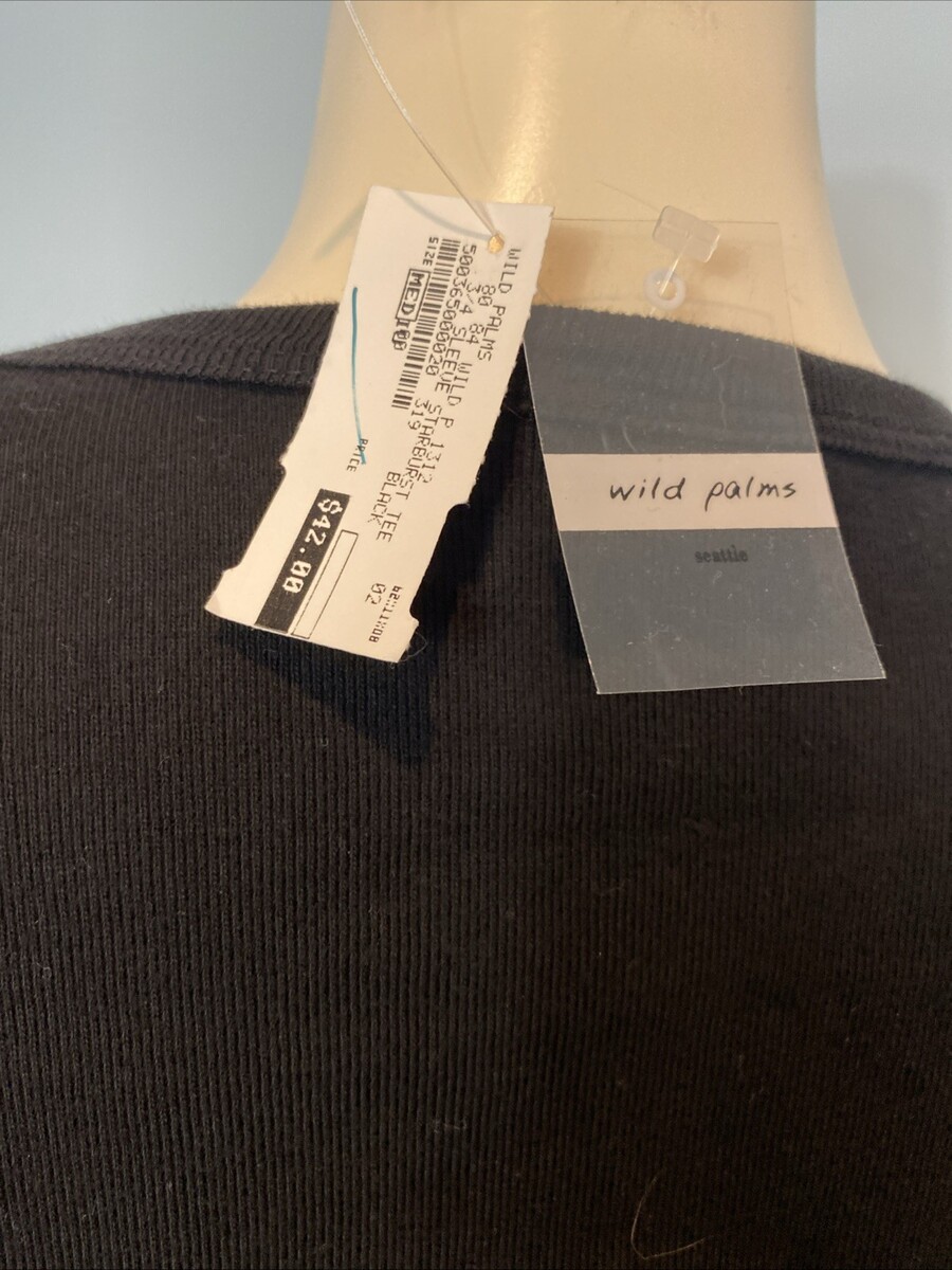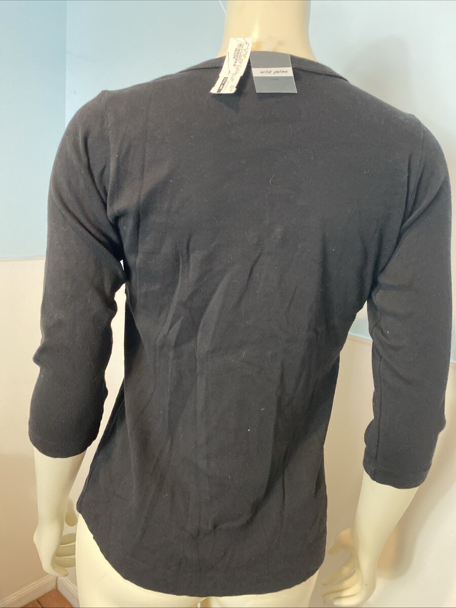 Wild Palms Women's V-Neck 3/4 Sleeve Tee Shirt Black Medium NWT