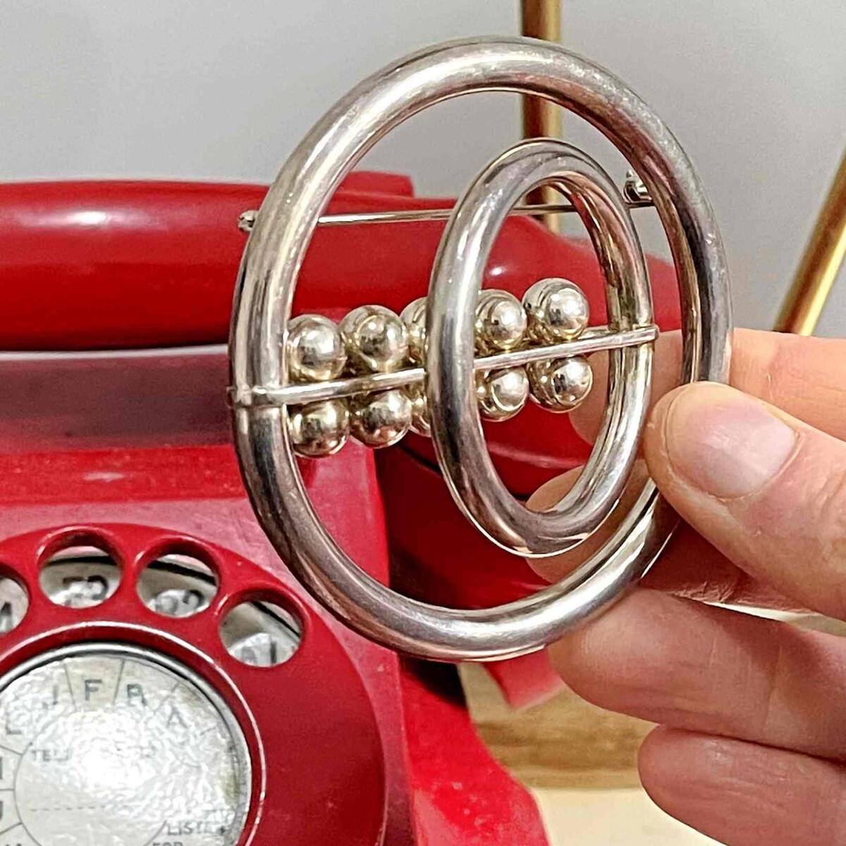 An exceptional kinetic moving balls and spheres design hand made designer large fine sterling silver vintage brooch circa 1980.