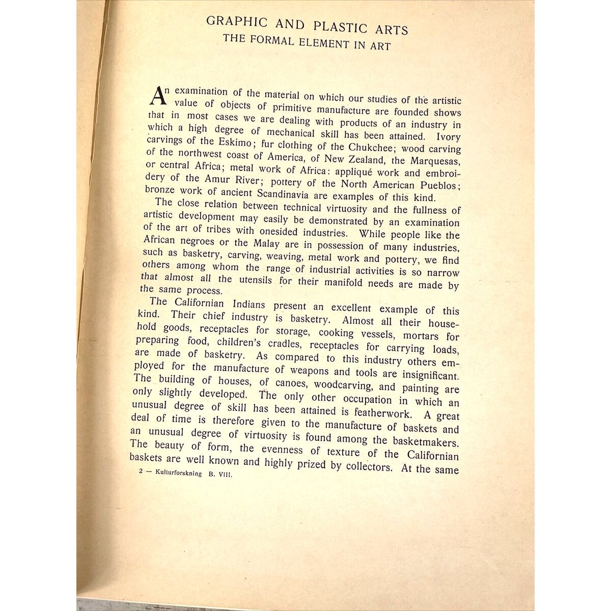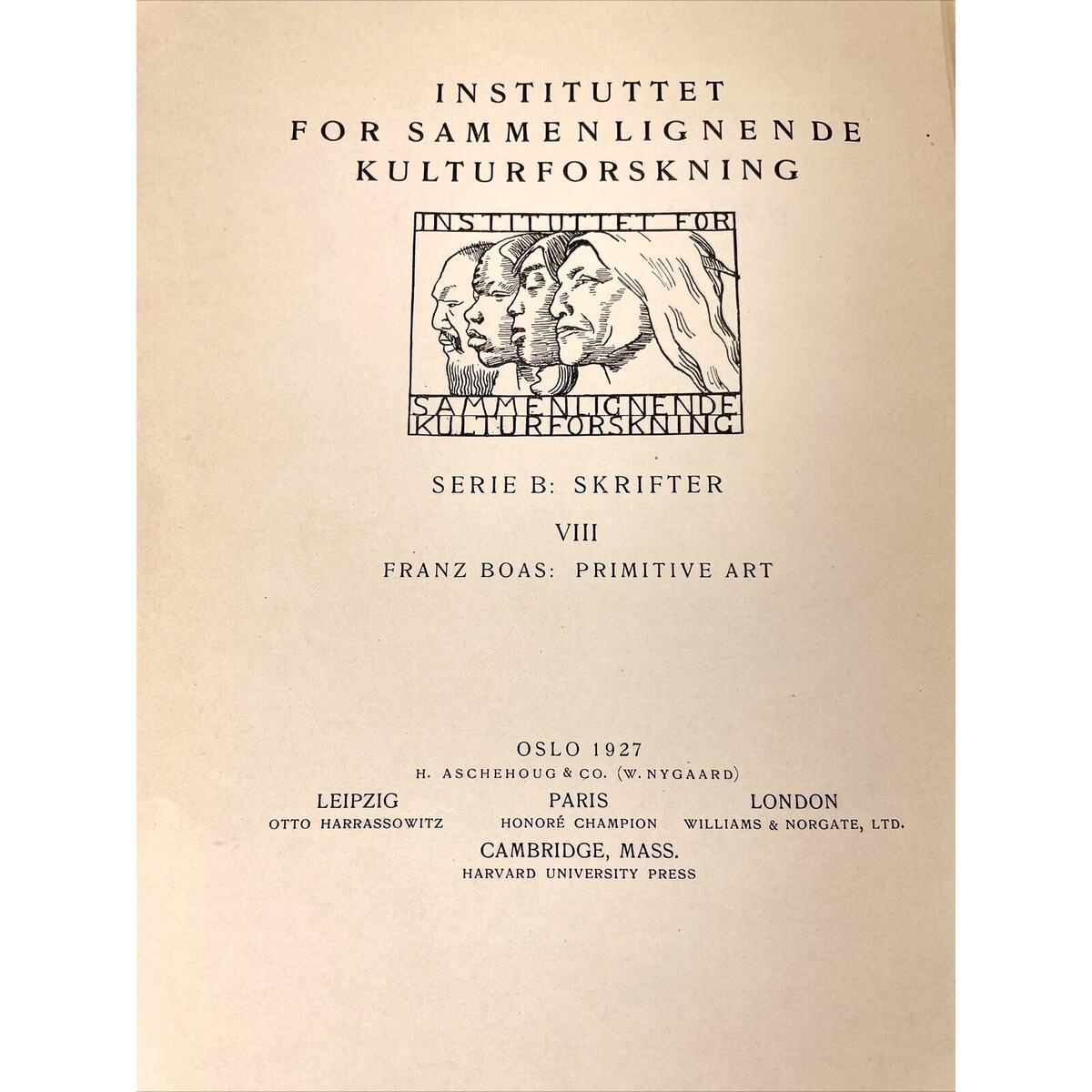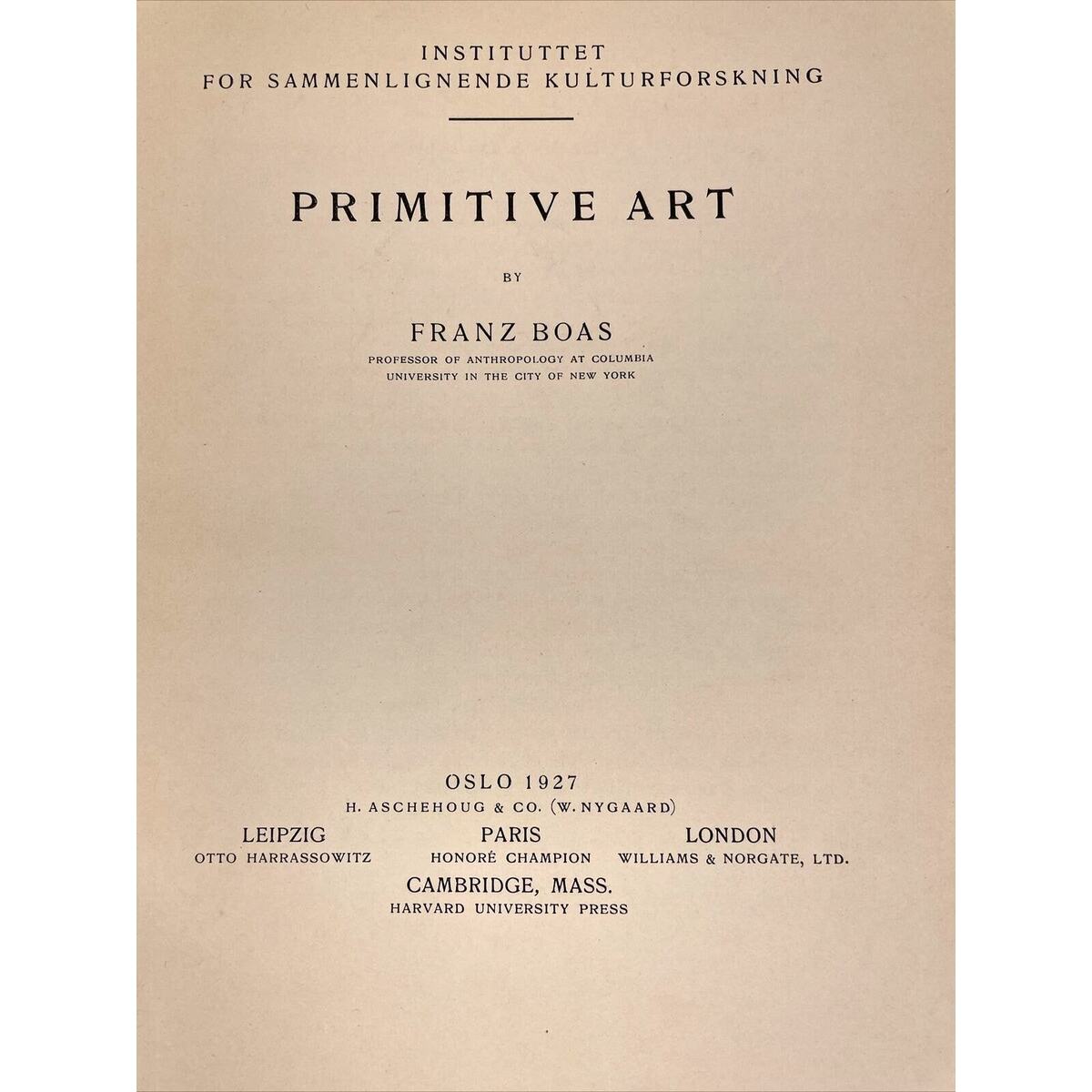 This 1927 first edition of ?Primitive Art? by Franz Boas, published in Oslo, Norway by H. Aschehoug Co., is a seminal work in the field of anthropology. The book provides an analytical description of the fundamental traits of primitive art, challenging notions of racial superiority and emphasizing cultural relativism. It features numerous illustrations, including 15 full-page plates and 308 text figures, offering visual insights into the art forms discussed. The binding is secure, with some spotting and scuffing to the boards, and a previous owner?s inscription on the front free endpaper. This rare edition is a valuable addition for collectors and scholars interested in anthropology, art history, and Franz Boas?s contributions to cultural studies.