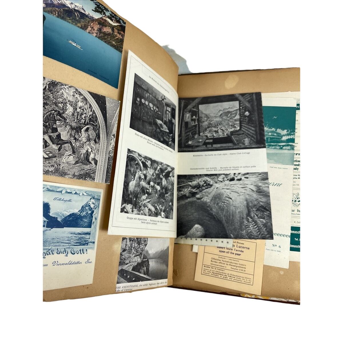 This vintage 1951 travel scrapbook offers a captivating glimpse into mid-20th-century European travel, featuring photographs and postcards from England, Germany, and Switzerland. Compiled by an avid traveler, the scrapbook includes images of iconic landmarks, scenic landscapes, and cultural experiences from these countries. The collection serves as a valuable visual document of post-war Europe, capturing the essence of travel during that era. Ideal for collectors of travel memorabilia, European history enthusiasts, and those interested in vintage photography, this scrapbook provides a personal perspective on the cultural and architectural highlights of the 1950s.