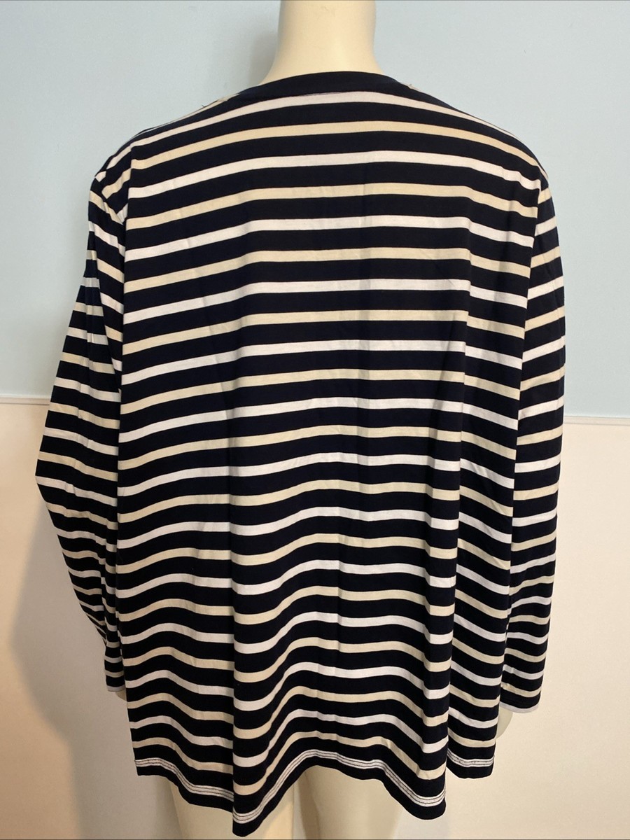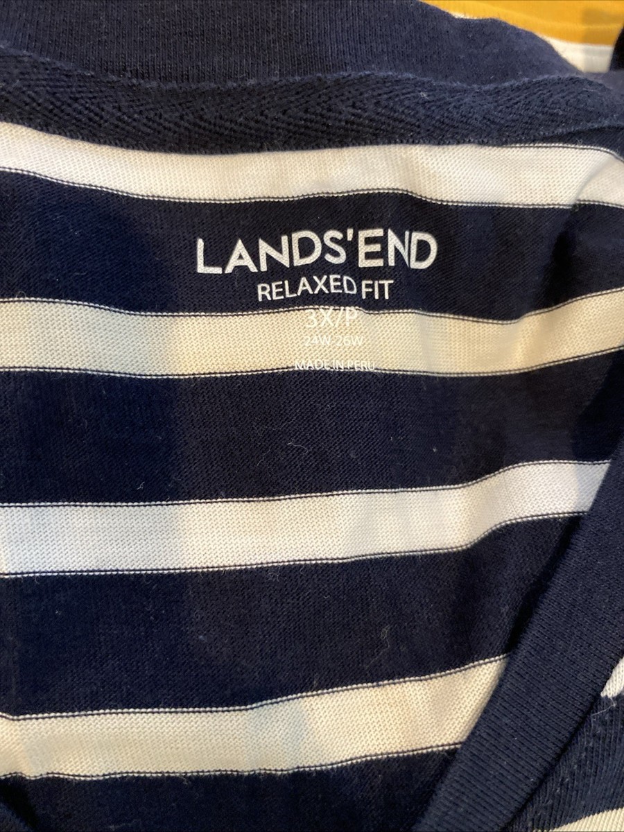 Lands' End Relaxed Fit Navy, White, Tan Striped V Neck Long Sleeve T shirt 3XP
