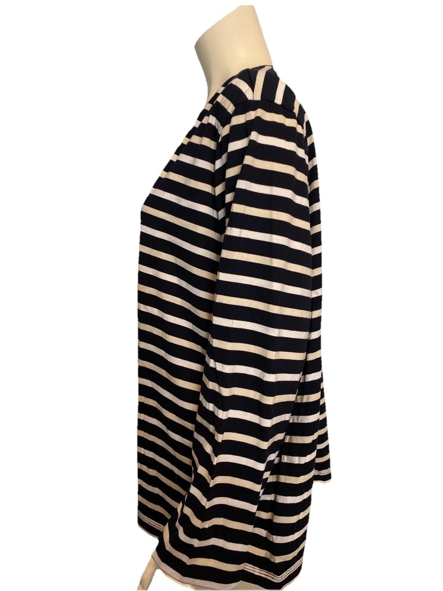 Lands' End Navy, White, Tan Striped V Neck Long Sleeve Tee Shirt